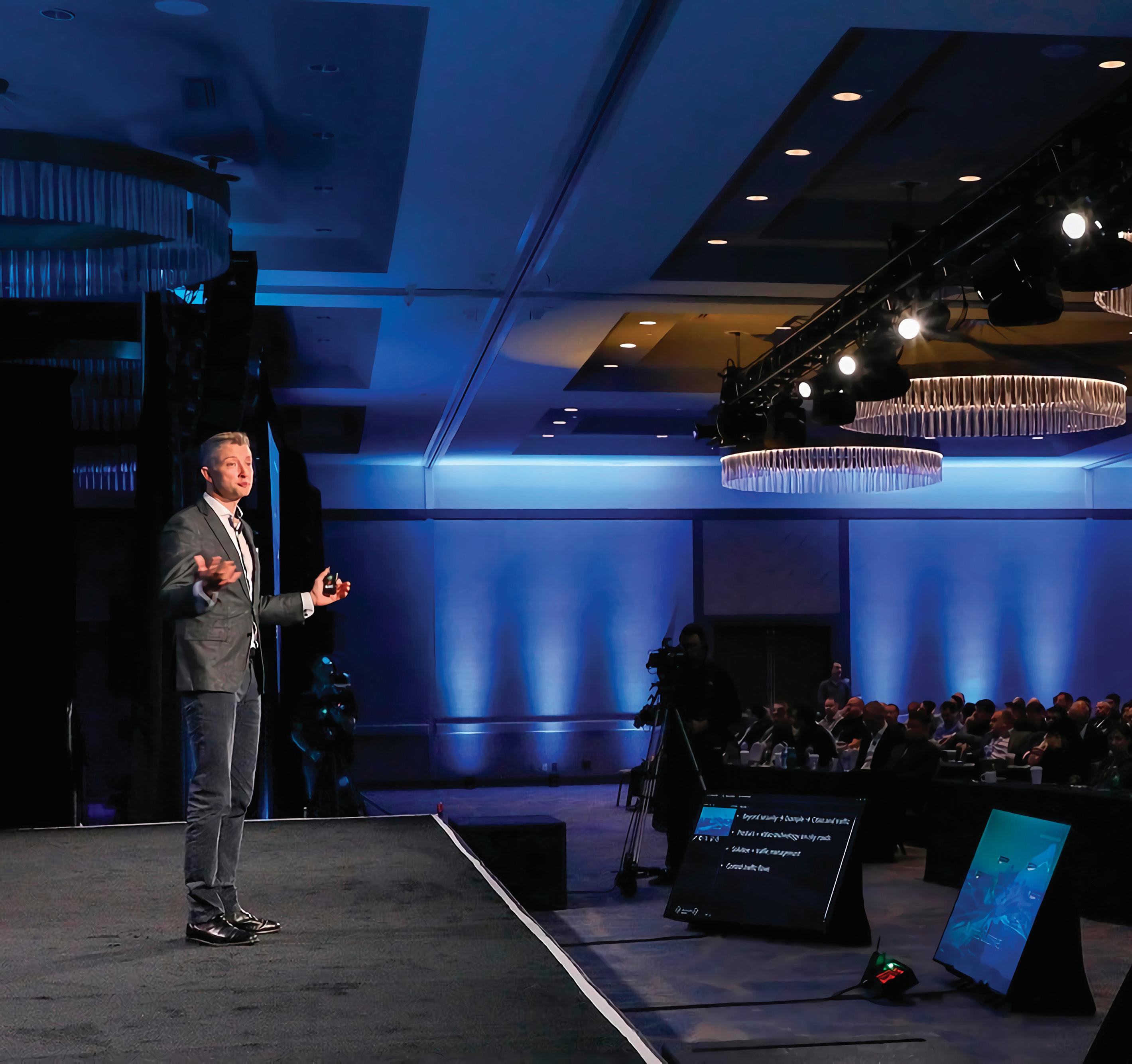 Conferencia y muestra comercial sobre soluciones de seguridad para aeropuertos.
