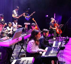 Los más pequeños del curso de Iniciación Musical lucieron sus destrezas al teclado y las percusiones, seguidos de los alumnos de los cursos juveniles y de adultos que se encargaron de recorrer diversas épocas y géneros musicales, con sus guitarras, bajos, teclados y batería, acompañando las voces de los alumnos de canto.