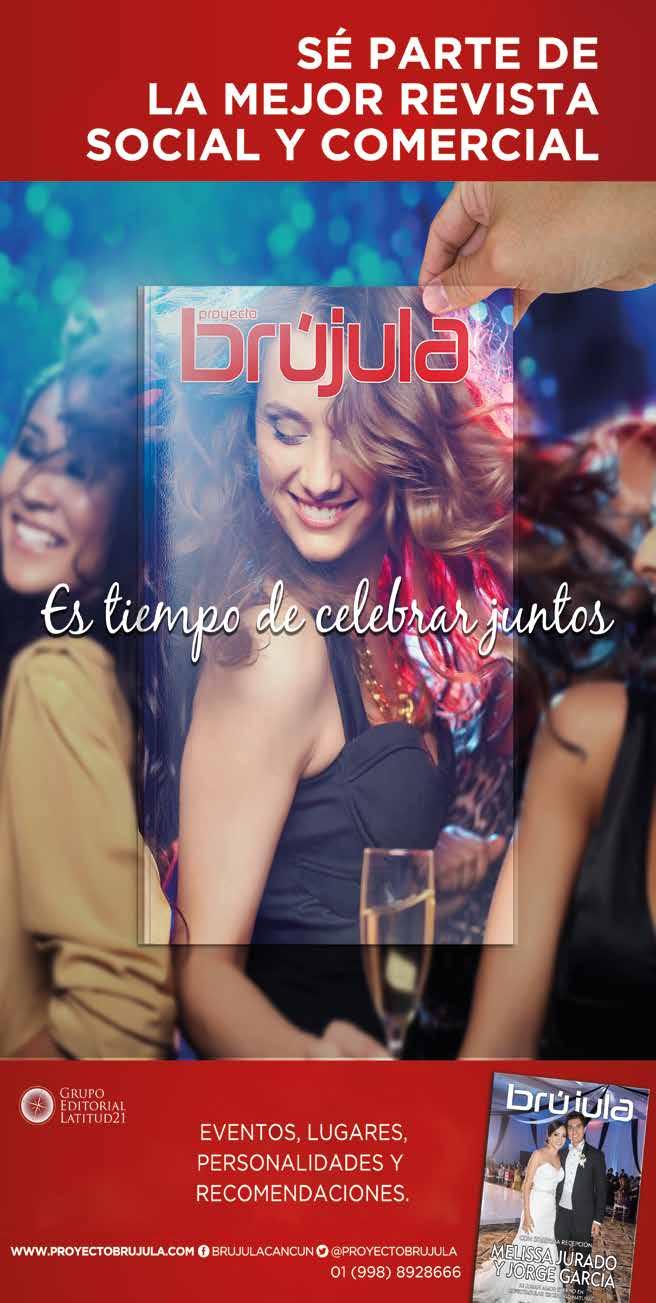 PROYECTO BRÚJULA, Año 2025, número 509, es una publicación mensual, de Grupo Editorial Latitud 21, S.A. de C.V. con domicilio en Av. Banco Chinchorro Manzana 1 Lote 8 Local 4 PB Supermanzana. 13, Código Postal 77504 Cancún, Quintana Roo México Tel: 99 88 92 86 66. Editor responsable, Esteban Torres. Con certificado de reserva de derechos al uso exclusivo otorgado por el Instituto Nacional del Derecho de Autor 04-2012-090512232300-102, ISSN 1870-4824, Certificado de Licitud de Título en trámite. Certificado de Licitud de Contenido en trámite. Impresa por Digitalización Publicitaria S.A. de C.V. Calle 39, No. 501, Col. Centro, C.P. 97000, Mérida Yucatán. Distribuida por Grupo Editorial Latitud 21, S.A. de C.V. PROHIBIDA LA REPRODUCCIÓN PARCIAL O TOTAL DEL CONTENIDO EDITORIAL Y FOTOGRAFICO SIN CONSENTIMIENTO POR ESCRITO DE LOS EDITORES. Grupo Editorial Latitud 21, S.A. de C.V. Investiga sobre la seriedad de sus anunciantes pero no se responsabiliza de las ofertas y promociones ofrecidas por los mismos. IMPRESO EN MÉXICO