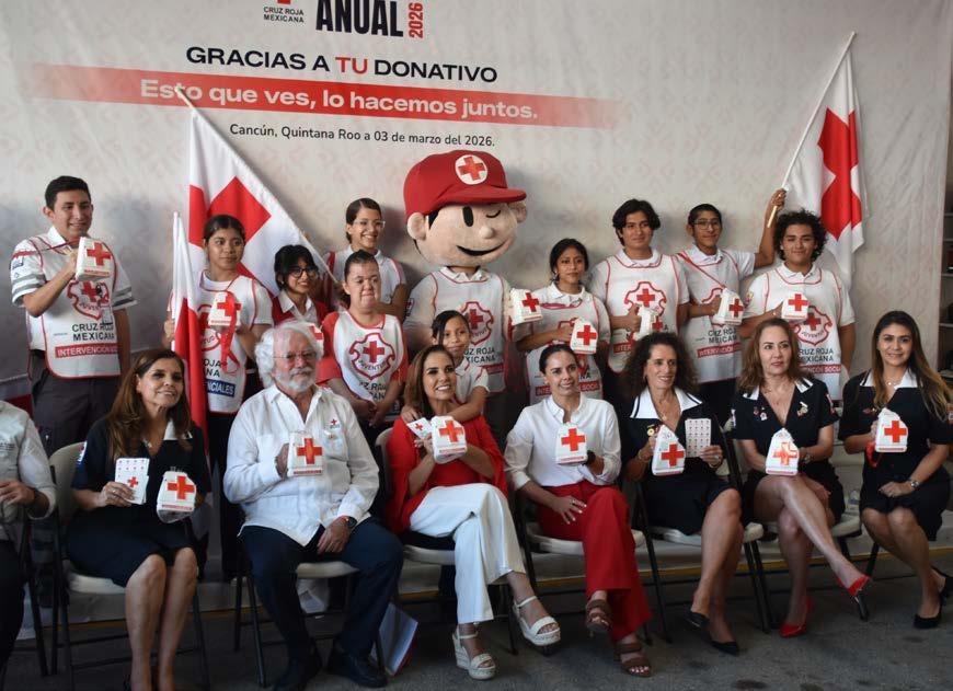 Bajo el lema: “Esto que ves, lo hacemos juntos”, inició la colecta anual de Cruz Roja 2026, ante la presencia de la gobernadora Mara Lezama; la presidente municipal Ana Paty Peralta, así como Carlos Constandse, delegado estatal de Cruz Roja, y su esposa, Noemí Peralta del Constandse, presidenta estatal del Comité de Damas Voluntarias de Cruz Roja, entre otras personalidades.