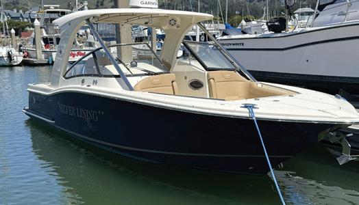 27 FT SCOUT 275 DORADO 2017. Ready for cruising, fishing, and all watersport activities. Numerous lounging options, telescopic swim ladder, custom fiberglass hardtop, and outstanding fishing features make this a versatile, family-friendly vessel. Multiple aftermarket upgrades include Garmin radar, fishing rod rocket launcher, and custom removable center bow cushion for maximum lounging. Other features: Bluetooth stereo with JL Audio upgrade, electric head upgrade, 152-quart cooler, cockpit sink, LED underwater and cockpit lighting, foldaway stern seat, in-floor fish boxes with pump, rod holders, outriggers, tackle drawers, nine-gallon waste tank, 14-gallon freshwater tank, and 25-gallon bait well. Boat has been drydocked and shrink-wrapped annually, and all required and recommended service/maintenance completed (all records available). Bow and cockpit cover, lines, fenders, life preservers included. $148,500. Half Moon Bay, CA leslienordin@gmail.com (781) 385-9352