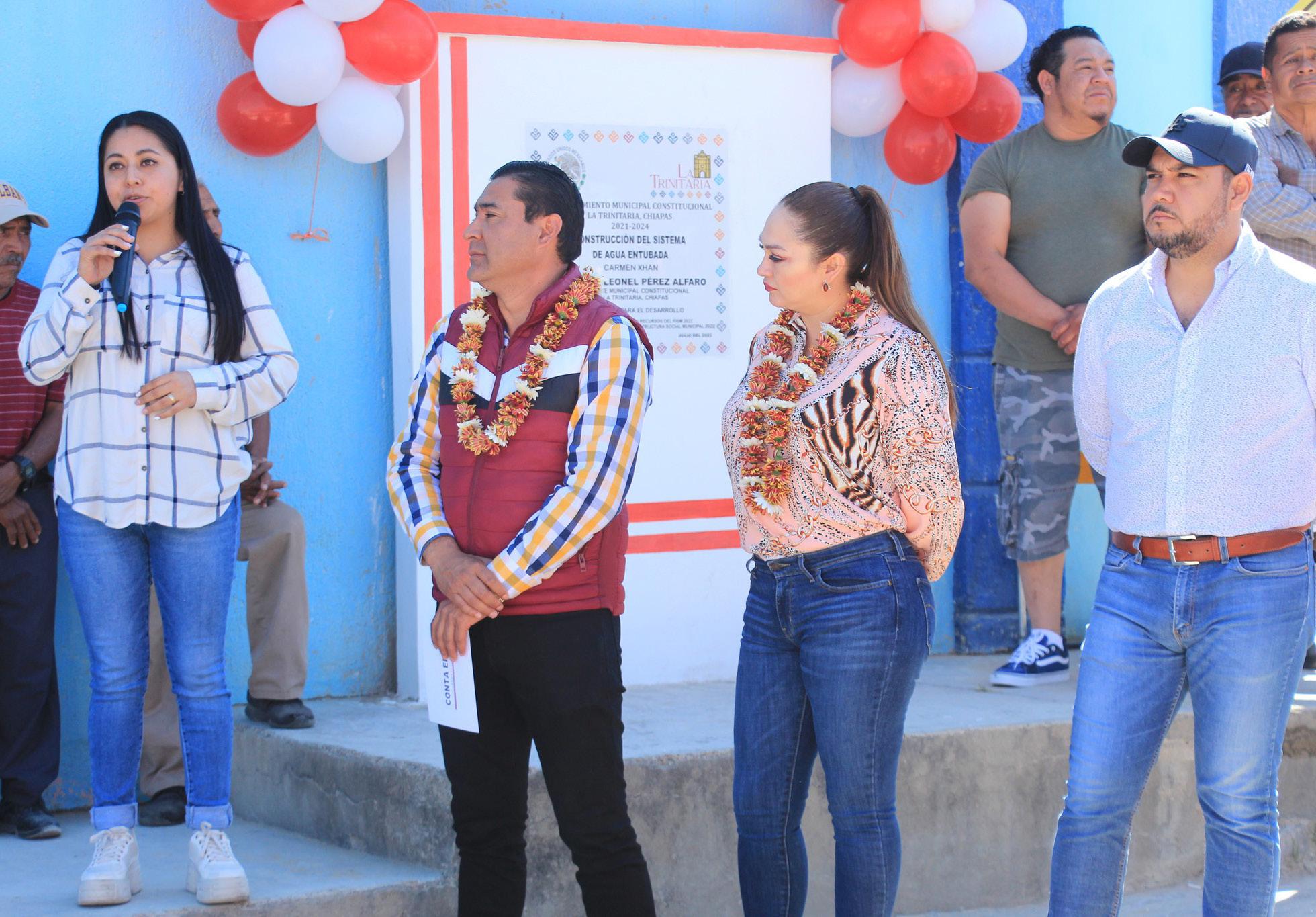 Con la compañía de las autoridades ejidales y habitantes del Ejido Carmen Xhan, el Presidente Municipal de La Trinitaria, C.P. Ervin Leonel Pérez Alfaro, realizó la entrega de obra consistente en la “Construcción de 5914 ML de Sistema de Agua Entubada” para el beneficio de los pobladores.