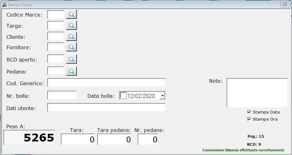 Tara semiautomatica (peso netto/lordo) e tara predeterminata.