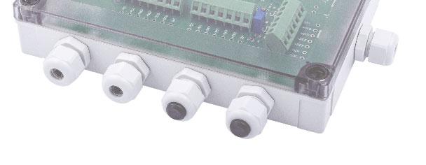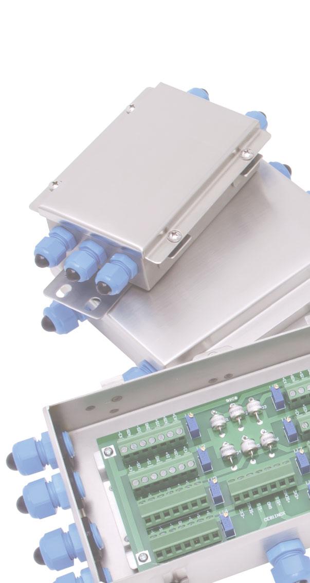 Boîtes de jonction en acier inox AISI 304 ou en ABS avec cartes d’égalisation ou cartes de jonction parallèle pour connecter de 1 à 4 ou 5 à 8 capteurs de pesage.