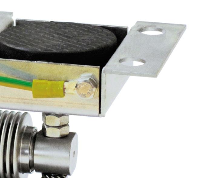 Articulation à compression en acier inox et coutchouc en mesure de compenser le non-parallélisme des plans d’appui de la structure. Utilisable pour les systèmes avec au moins 3 appuis.