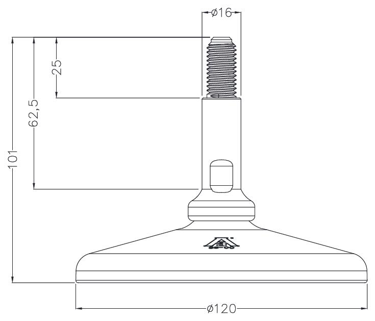 Plaque pour la réalisation de contraintes contre le déplacement latéral et le renversement. Pour pied articulé à centrage automatique à bille.