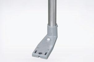 Stainless steel bracket for floor mounting.