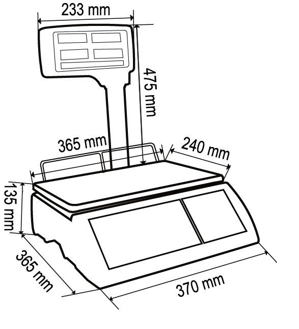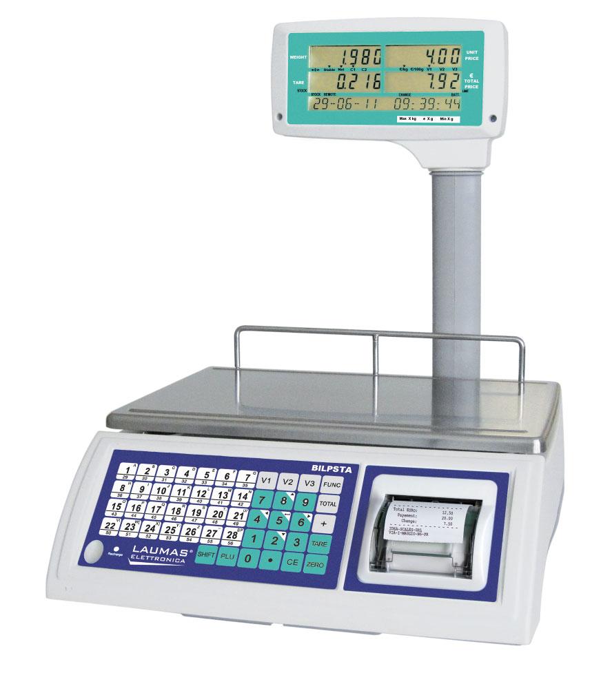 Simultaneous display of: weight, unit price, amount. 100 storable items (PLU) with unit price.
