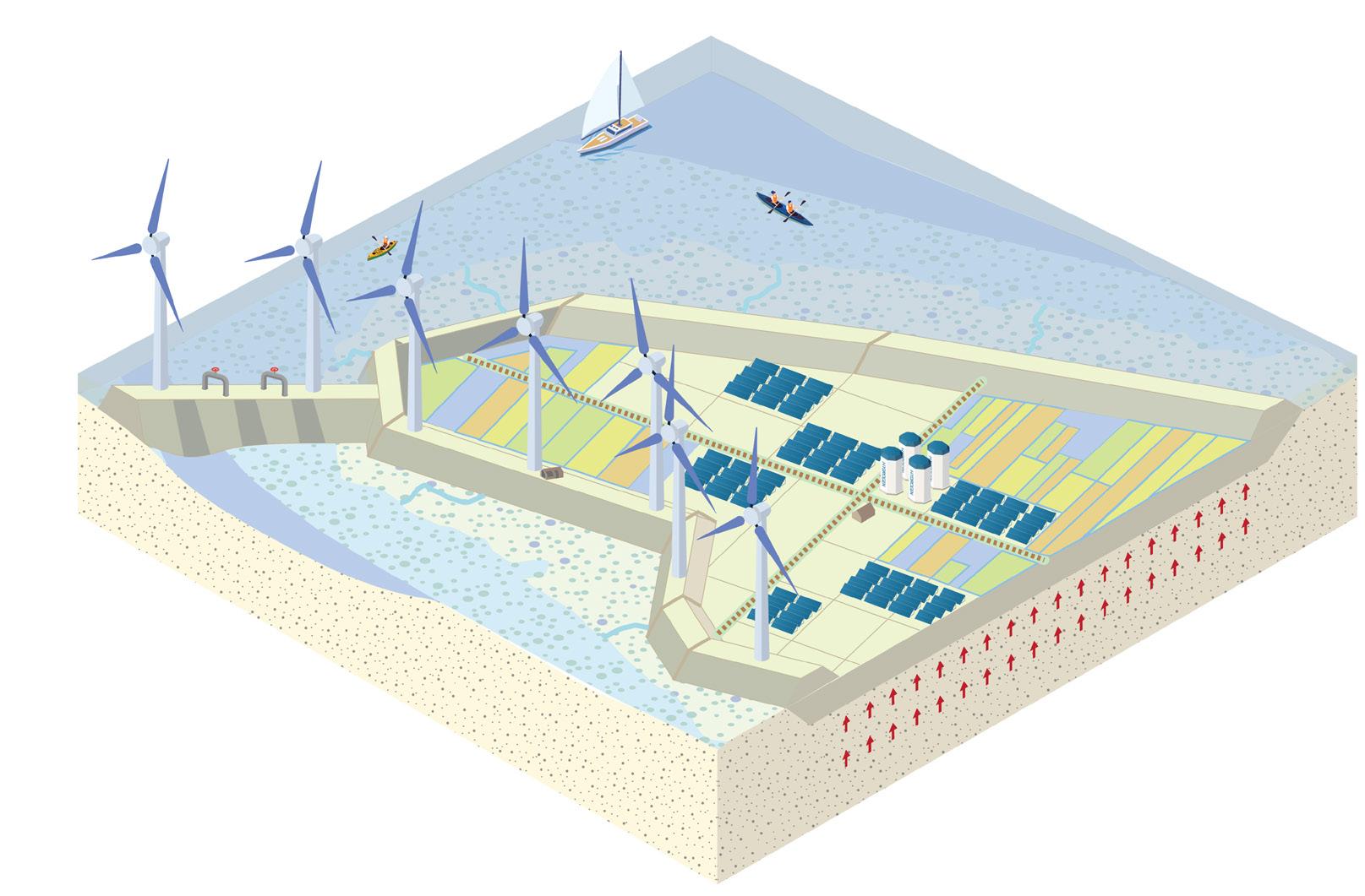 2. de bundeling van zon, wind en water als energiebron,