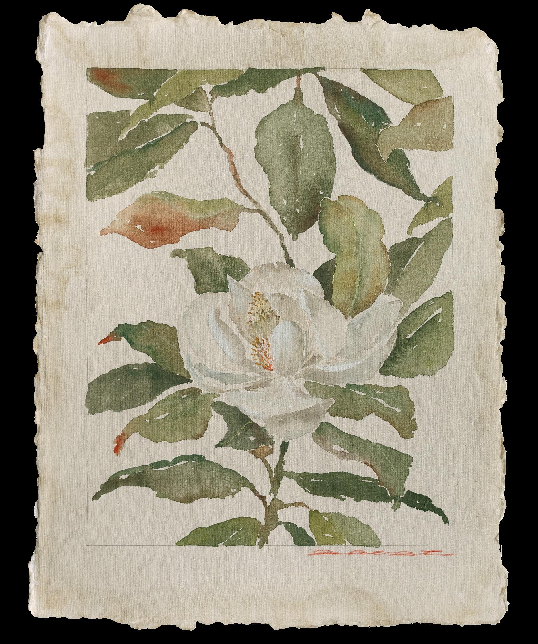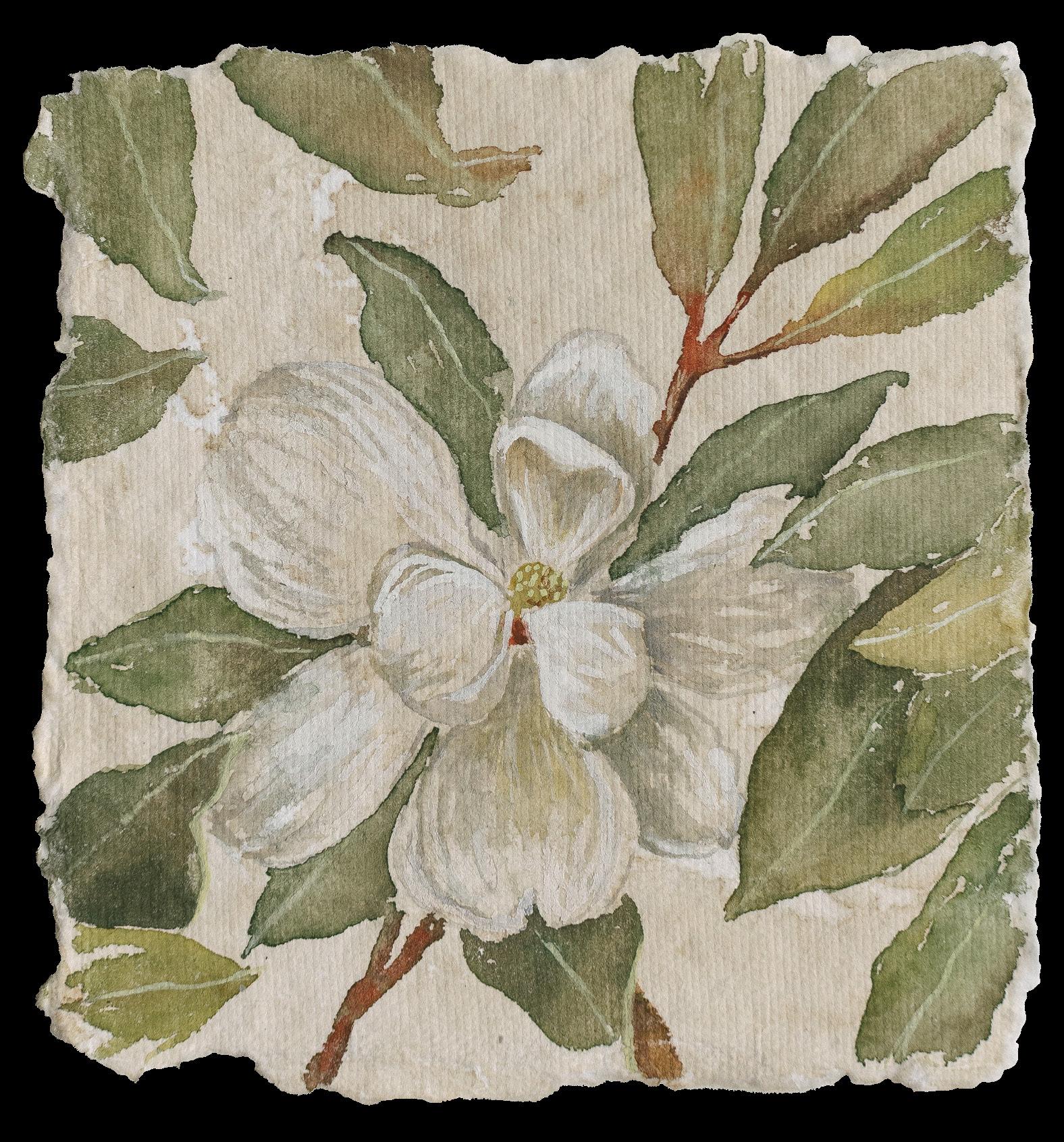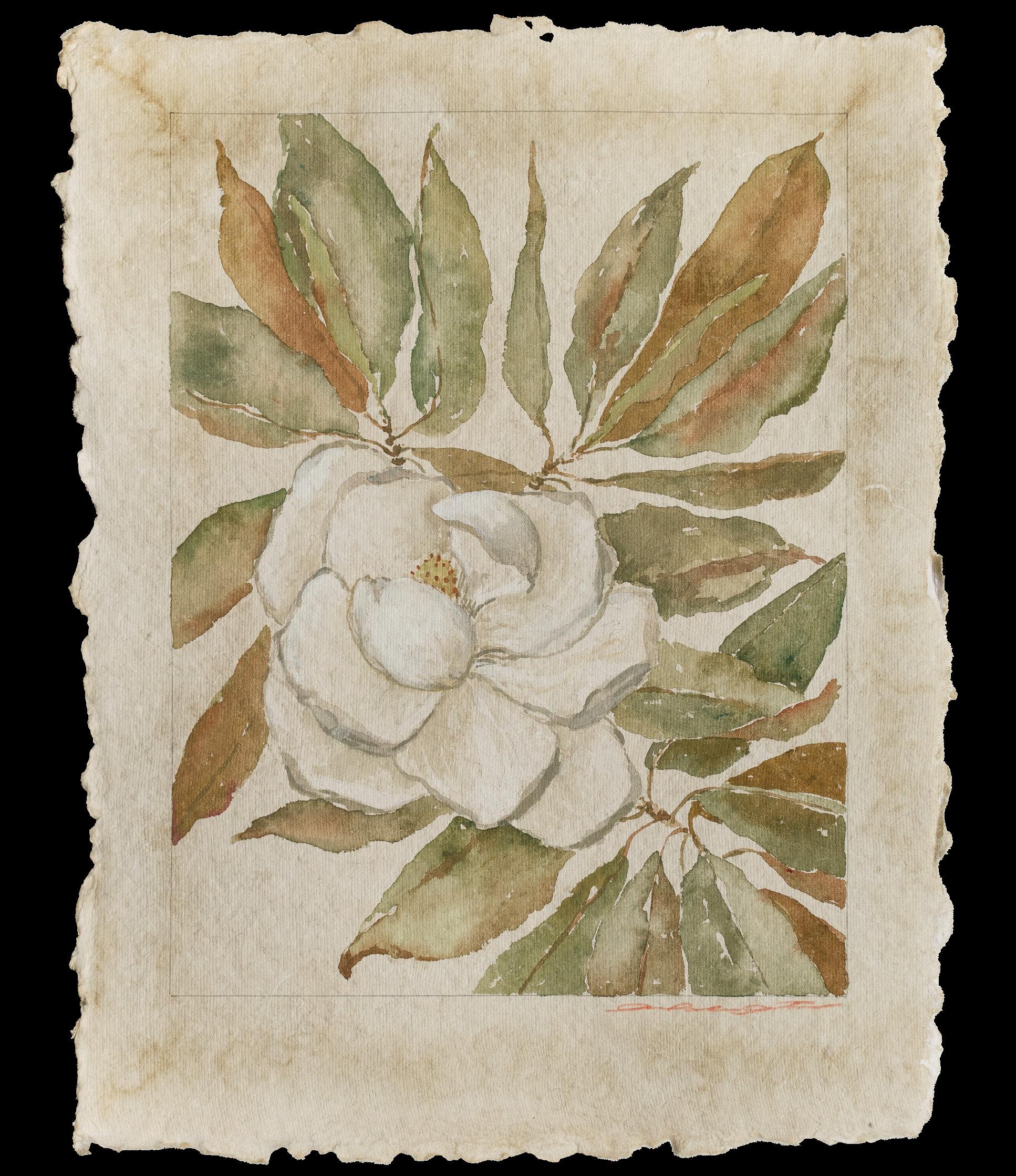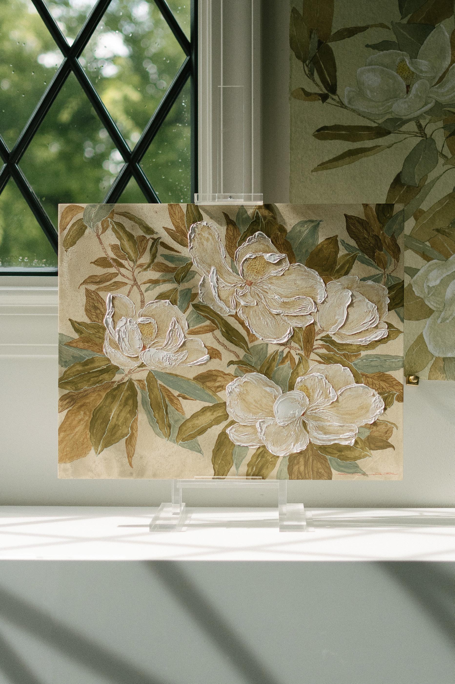 This collection traces the magnolia’s quiet alchemy from June to August; when pristine ivory blossoms and glossy emerald leaves give way to heavy branches, curling edges, and waxy red seeds dropping like confetti. Magnolia VI is a celebration of transformation, delighting in the poetry of change.