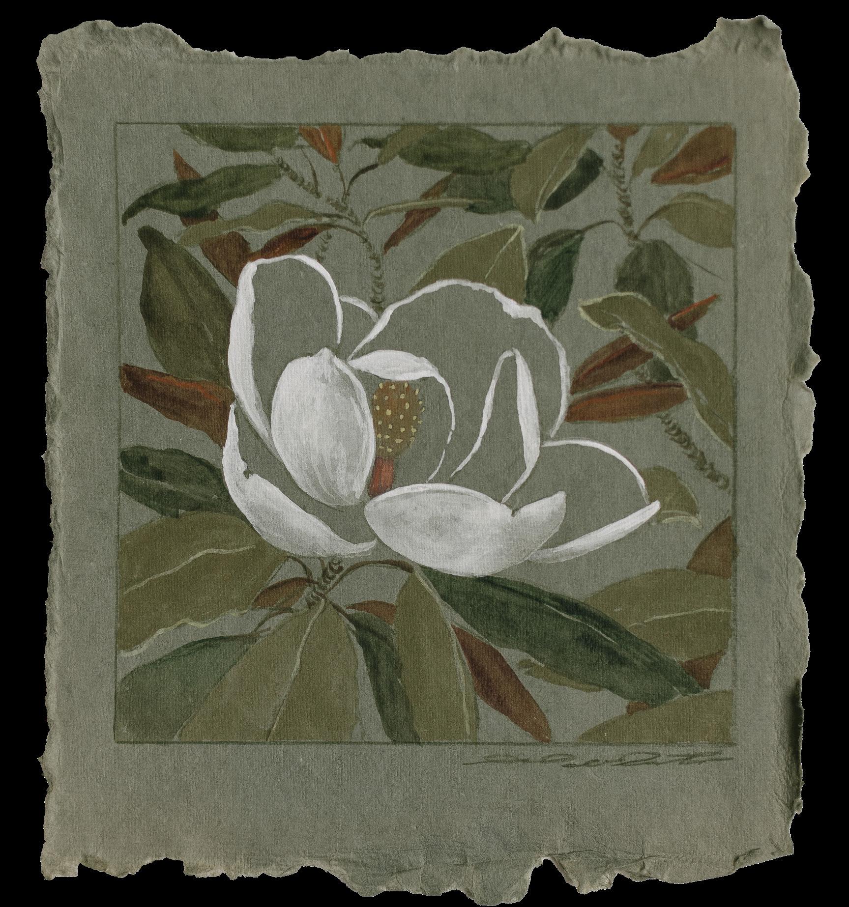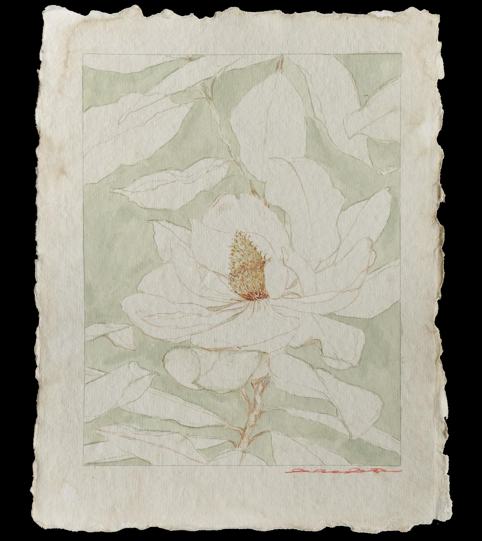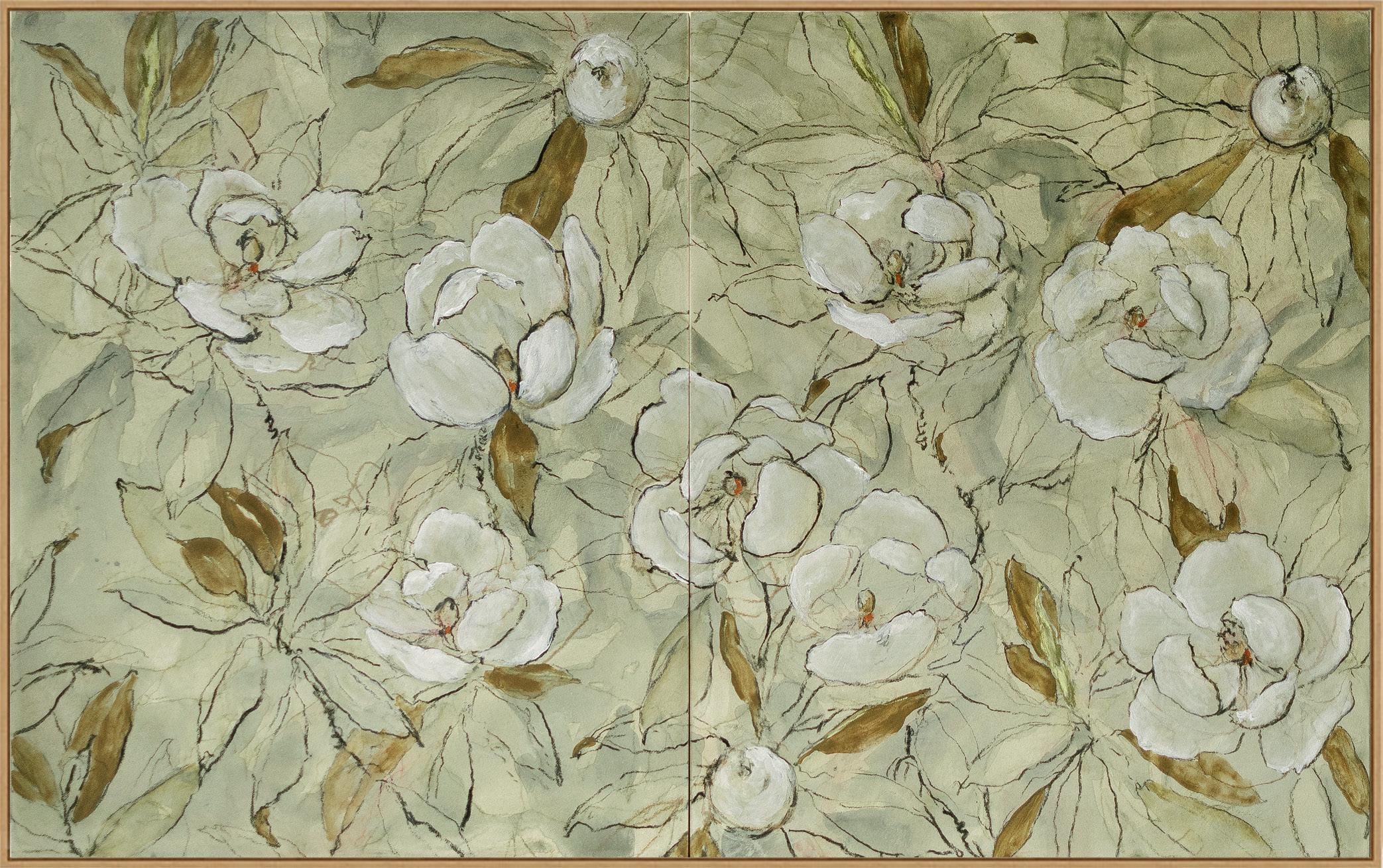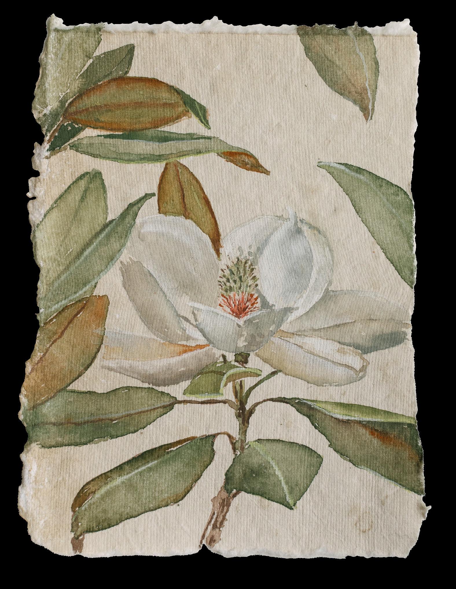 This collection traces the magnolia’s quiet alchemy from June to August; when pristine ivory blossoms and glossy emerald leaves give way to heavy branches, curling edges, and waxy red seeds dropping like confetti. Magnolia VI is a celebration of transformation, delighting in the poetry of change.