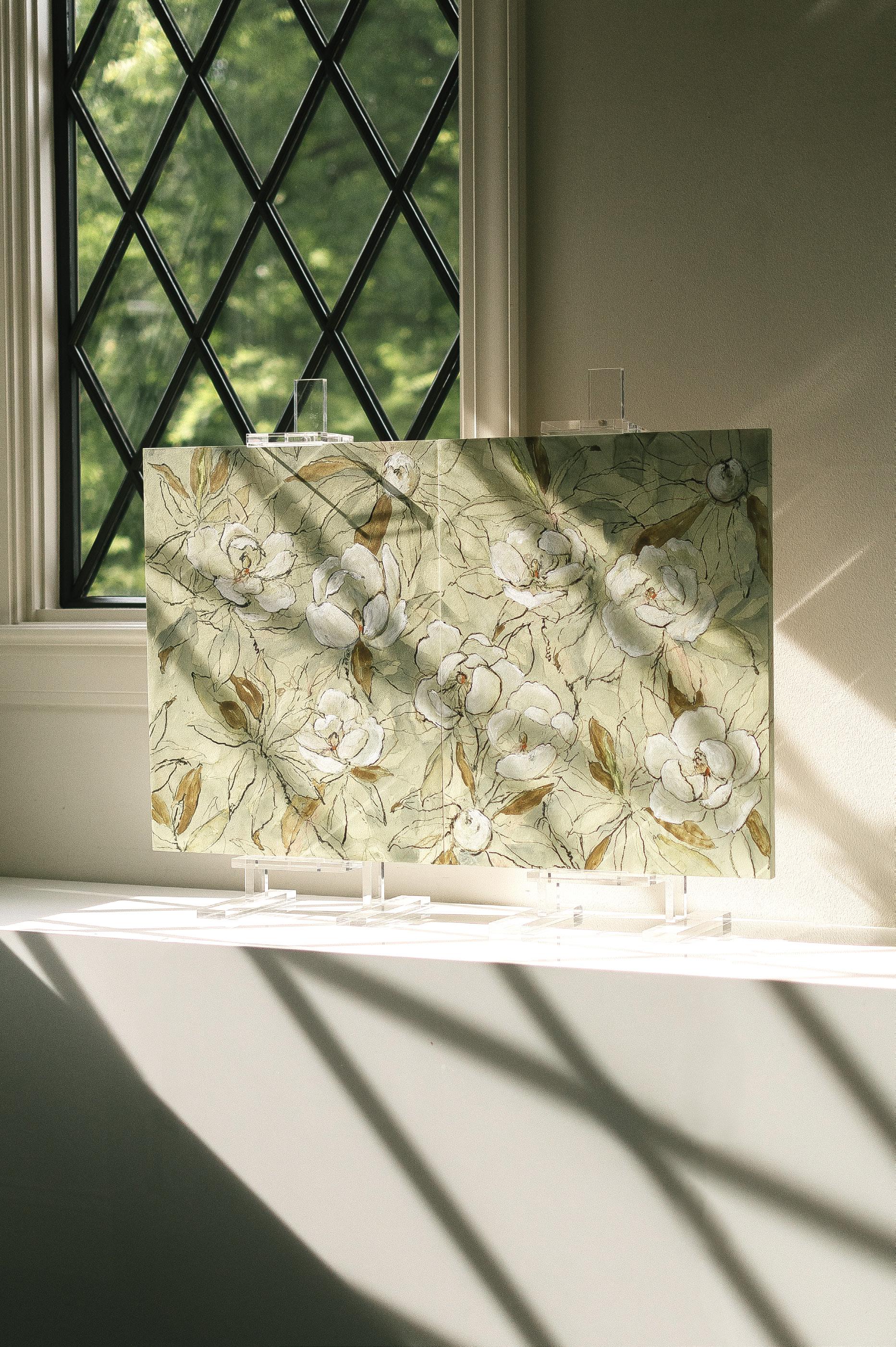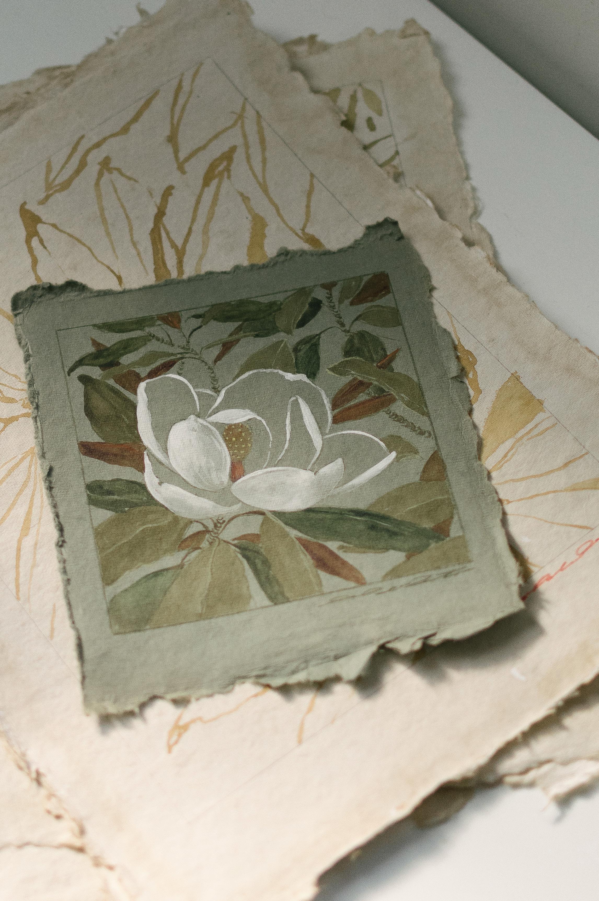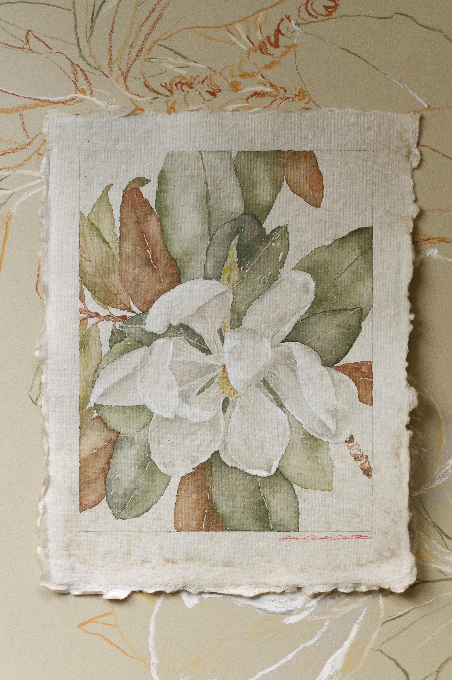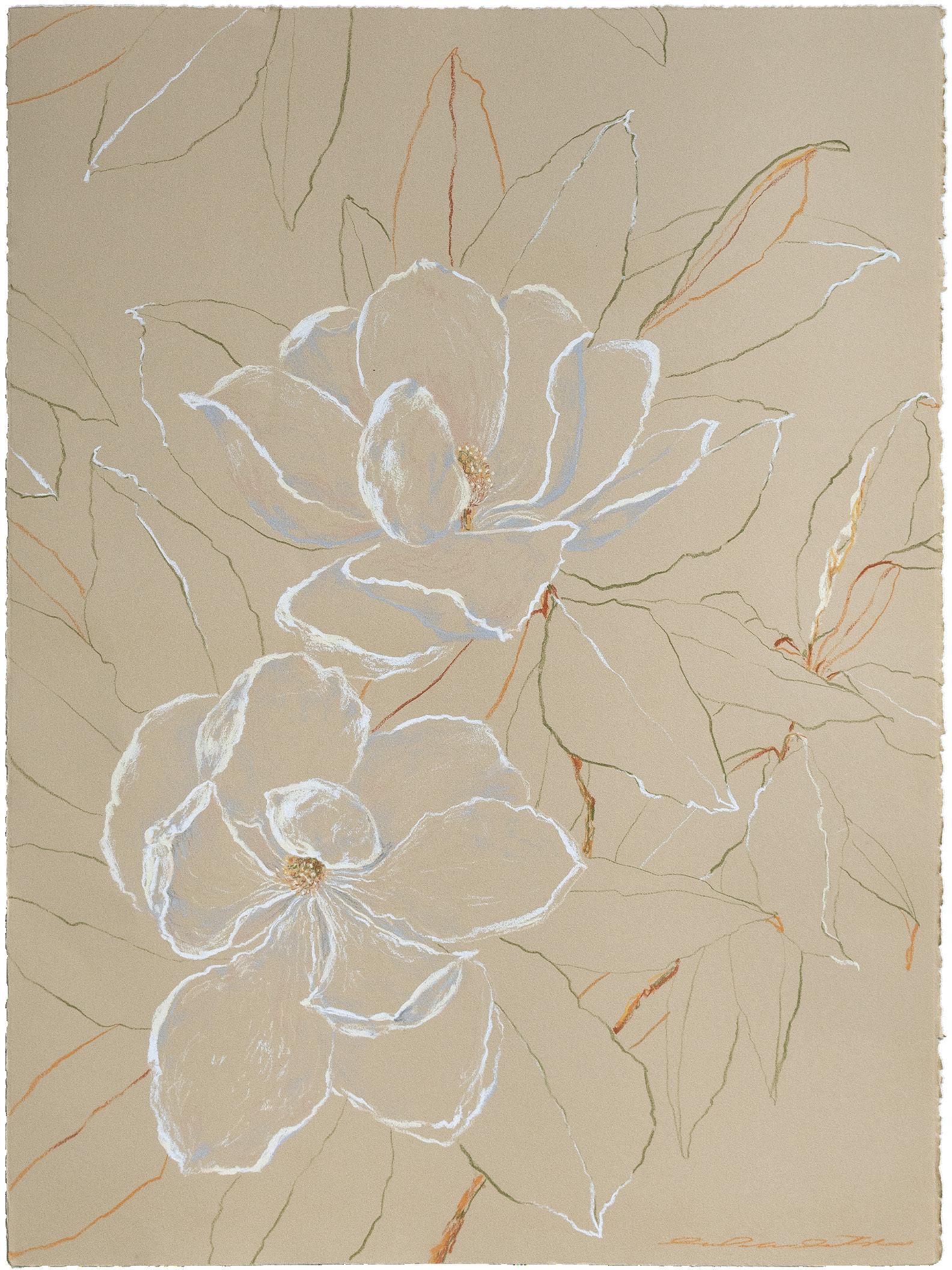 This collection traces the magnolia’s quiet alchemy from June to August; when pristine ivory blossoms and glossy emerald leaves give way to heavy branches, curling edges, and waxy red seeds dropping like confetti. Magnolia VI is a celebration of transformation, delighting in the poetry of change.