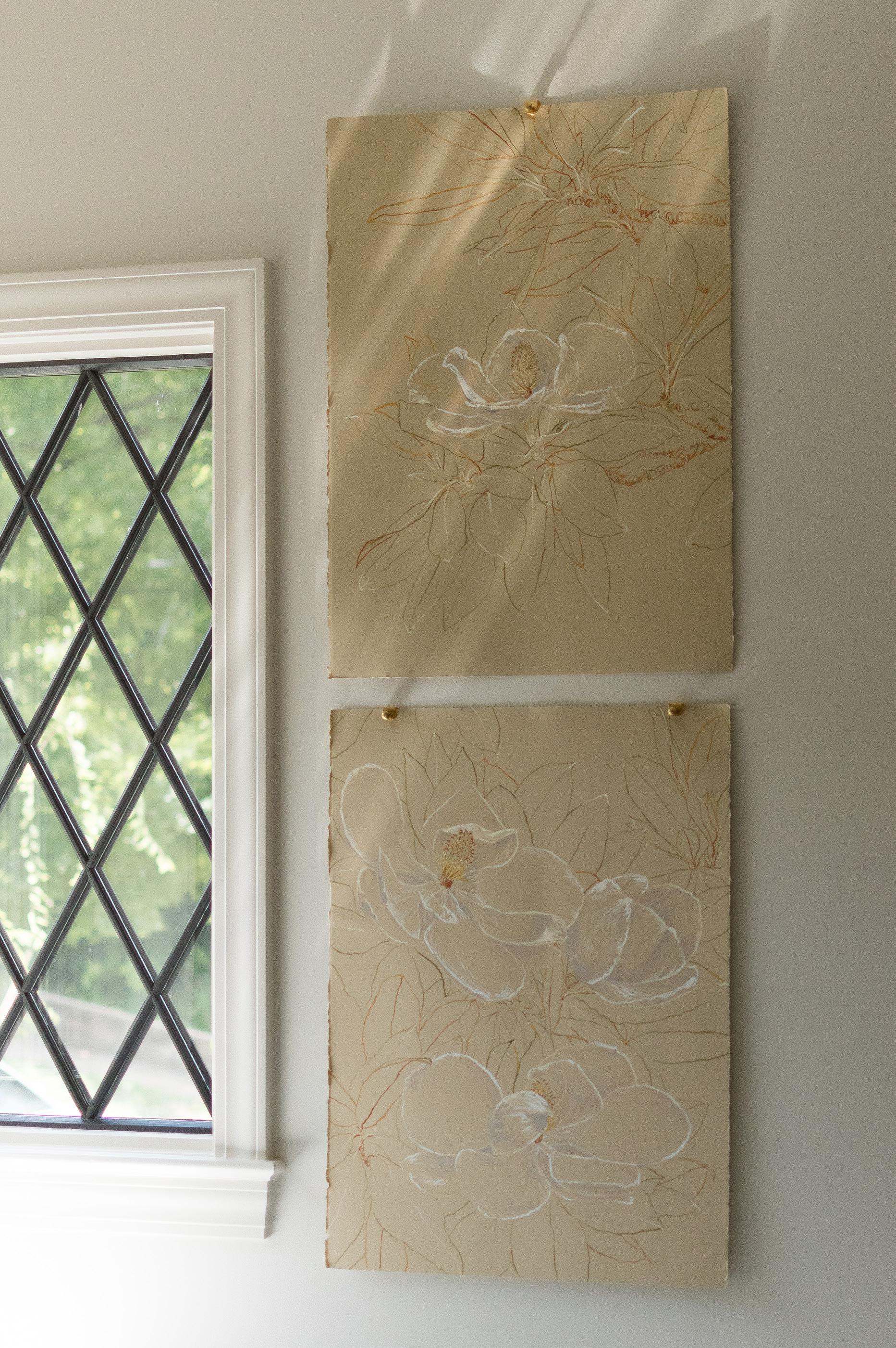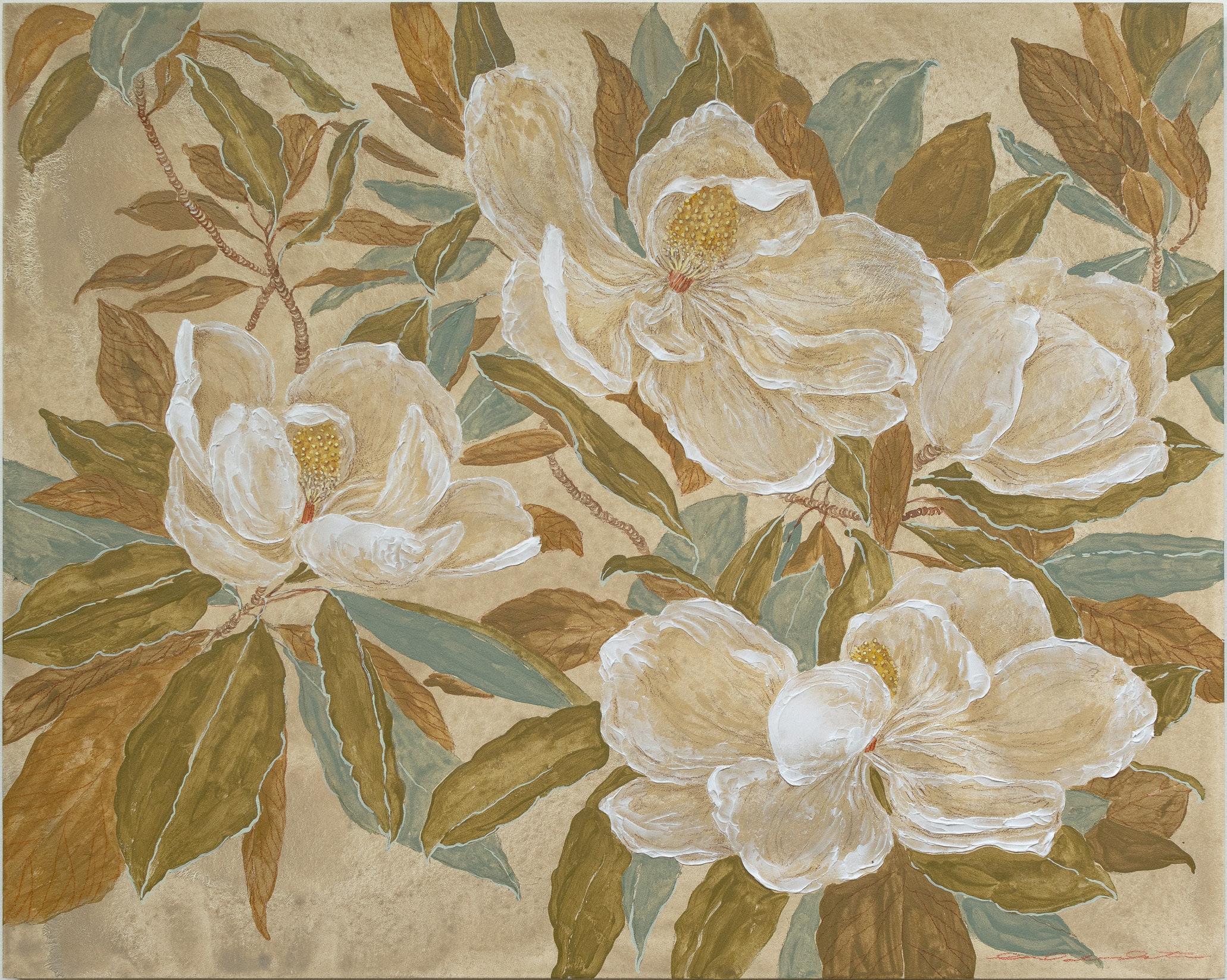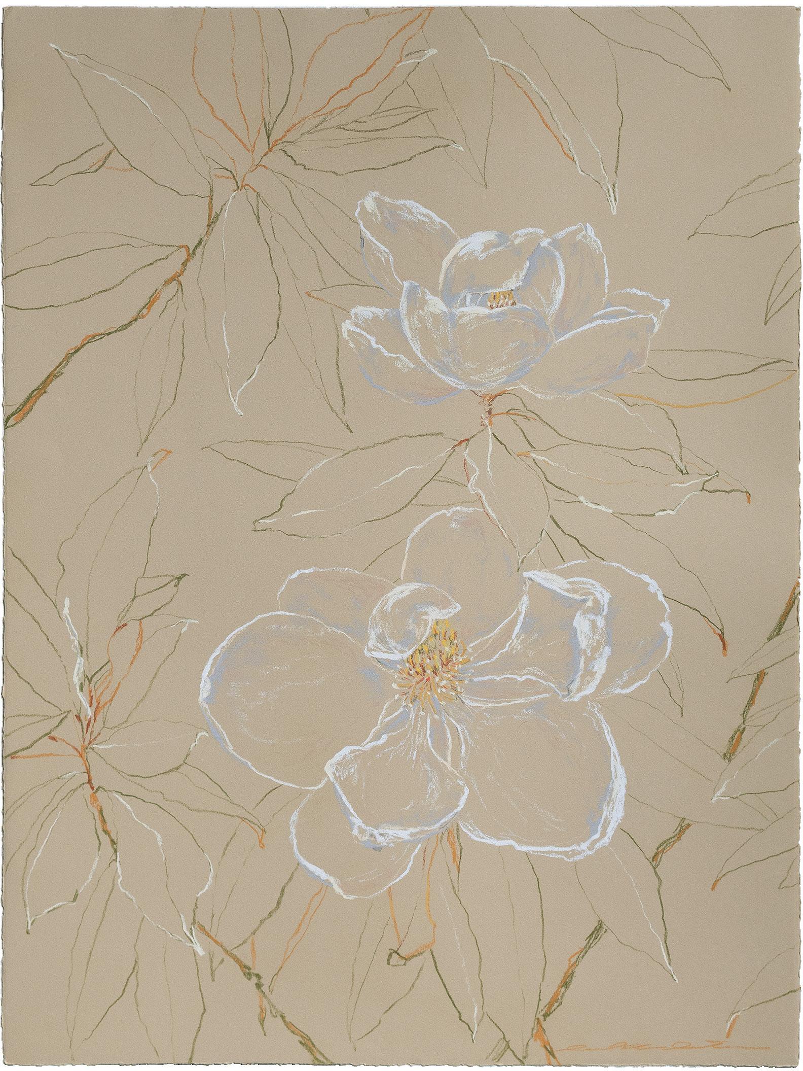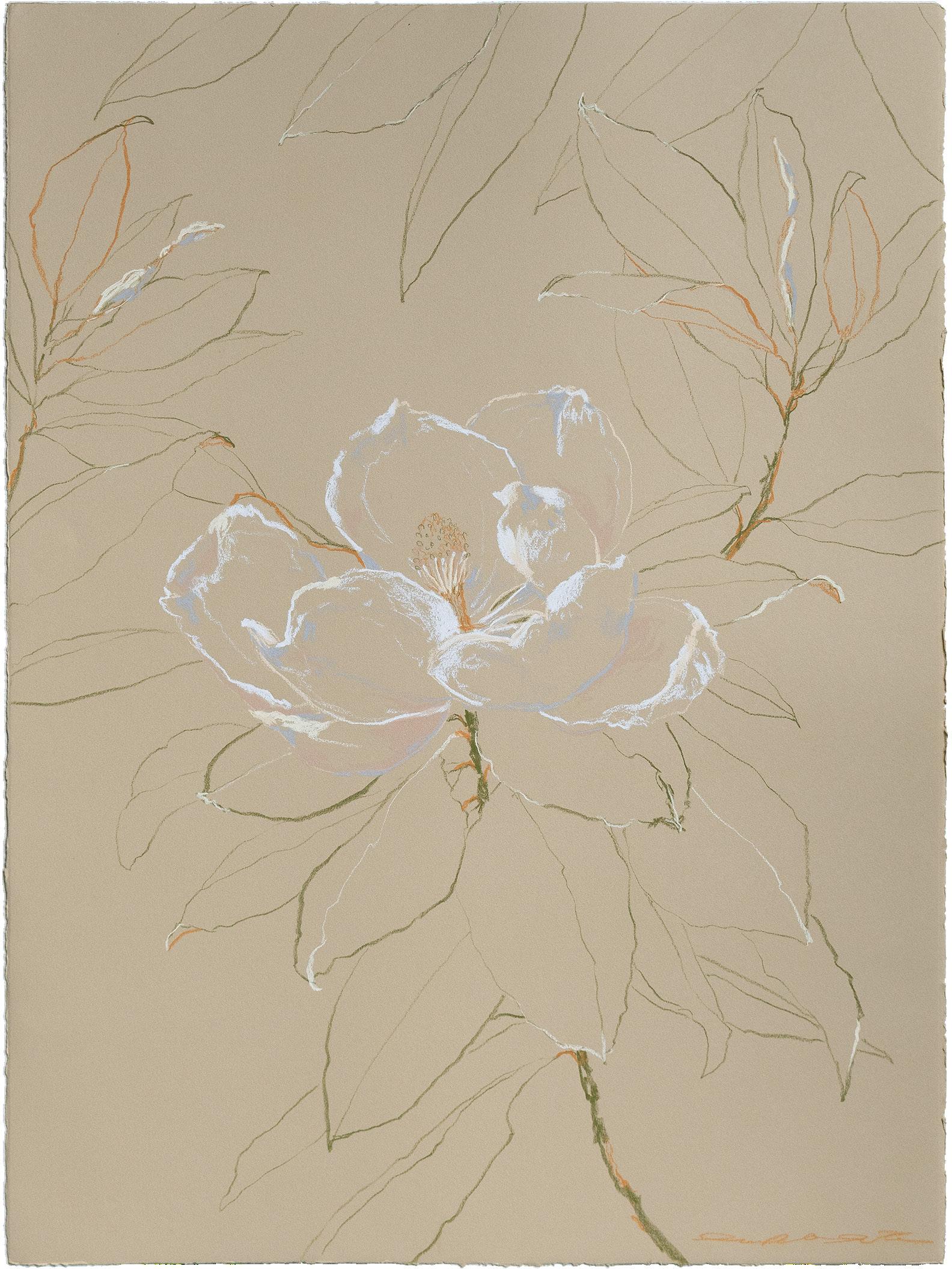 This collection traces the magnolia’s quiet alchemy from June to August; when pristine ivory blossoms and glossy emerald leaves give way to heavy branches, curling edges, and waxy red seeds dropping like confetti. Magnolia VI is a celebration of transformation, delighting in the poetry of change.