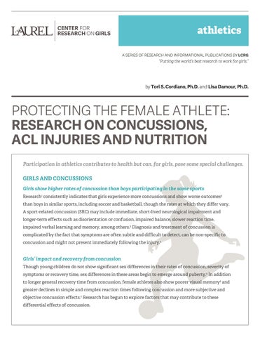 PROTECTING THE FEMALE ATHLETE: RESEARCH ON CONCUSSIONS, ACL INJURIES AND NUTRITION Participation in athletics contributes to health but can, for girls, pose some special challenges.