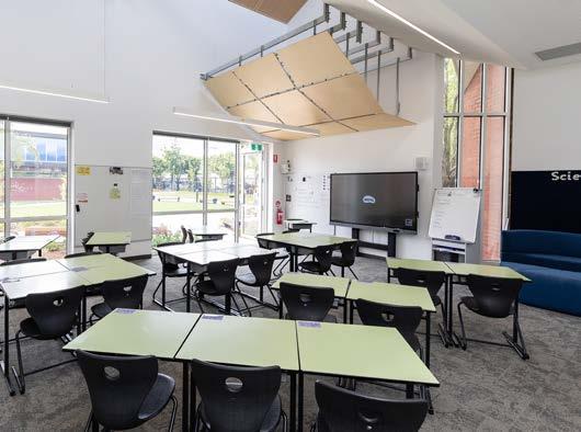 filled with activities which enhanced creativity, problem solving and working collaboratively. The teachers and students have commented on the calm atmosphere of the Year 5/6 Centre which has been supported through acoustic treatments, colour palette and air quality. The Year 5/6 Centre provides a window to the history of Lauriston Girls’ School, with visible reminders of the gymnasium that was, and the architectural design of the original building being maintained.