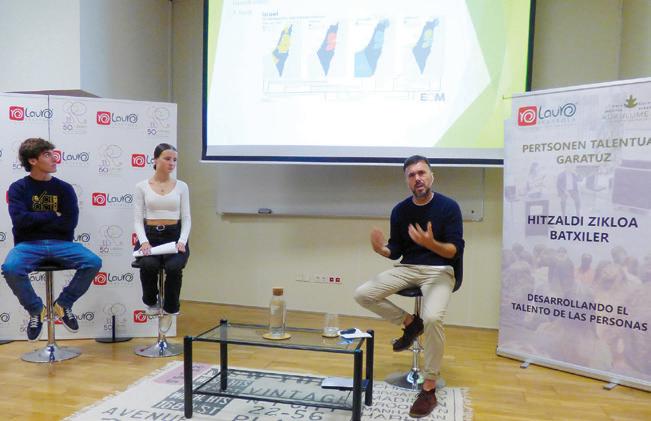 En cuanto a los proyectos concretos de los que os hablamos en esta entrega, podréis observar la consolidación de algunos como el ciclo de conferencias “KUKULUMENDI – Desarrollando el talento de las personas” (pag. 10); los programas dentro del Plan de Orientación Académica y Profesional en Secundaria (“Laur@Lan”, colaboración de padres, madres y exalumnos sobre experiencias académicas y profesionales, txokos organizados por alumnado de Bachiller para sus compañeros de 4º de la ESO, etc.). Respecto a la Orientación a padres y madres, y con el objetivo de facilitar y mejorar la participación en Infantil, creamos “Hezi eta Bizi” (pag. 15), un espacio para el encuentro entre familias y profesionales, tratando diferentes temas en una jornada participativa.
