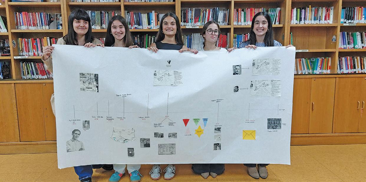 Unaik eta Antonek egindako ikerketa prozesua azaldu zuten, eta horrek Gerra Zibileko eta Mundu Gerrako gertaerak aztertzeko aukera eman zien ikaseleei. Tailerraren azken produktua, benetako ikerketa-proiektu bat hain gertutik bizitzeaz gain, talde bakoitzak egindako denbora-lerro bat izan zen.