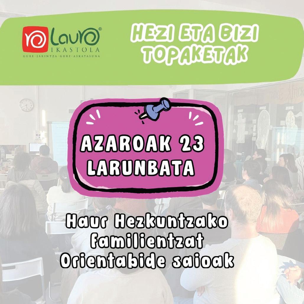 Lauro Ikastolaren etorkizun hurbilari dagokionez, hurrengo Plan Estrategikoa zehazten hasi ginen, eta horretarako familiak hausnarketa eta azterketa prozesuaren partaide izatera gonbidatu genituen (3. or.). Datuak bildu ondoren, focus-group taldeak bildu genituen hainbat gai lantzeko, eta haien ekarpenekin 2025-2029 jarduera-lerroak definitzen jarraituko dugu.