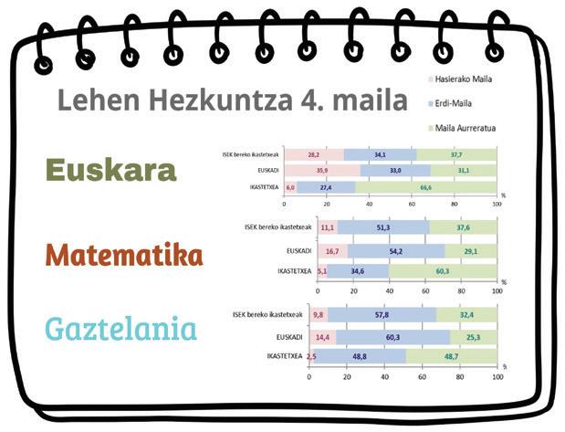 ehen Hezkuntza 4. mailan eta DBHko 2. mailan zeuden ikasle guztiek Eusko Jaurlaritzako Diagnostiko frogak burutu zituzten eta emaitzak benetan baikorrak izan ziren. Etapa bietan Euskara, Matematika eta Gaztelania frogak pasatu ziren eta hartu ditugun emaitzek beste ikastetxe, sare eta orokorrean Euskadirekin alderatzen gaituzte, ikasleen “Hasierako maila”, “Erdi maila” eta “Maila bikaina” zein den islatuz. Lehen Hezkuntza 4. maila: Hiru arloetan, emaitzarik onenak lortu genituen bai Euskadirekin alderatuta zein gure ISEK bereko ikastetxeekin alderatuta ere. Maila aurreratuan zein ertainean ikasle kopuru handiago dugu alderaketa horretan; eta txikiagoa hasierako mailan..