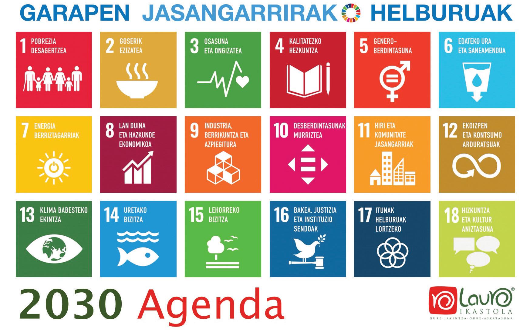 2030 Agendaren bereizgarrietako bat da ingurune hurbilarekin konprometituta dagoela eta horri egokitu behar zaiola. Beraz, Lauro 2030 Agenda-plana eta 2030 Agendaren helburuak lantzeko modua gure testuinguruaren eta ahalmenaren araberakoa da, hezkuntza-komunitatetik abiatuz, tokiko-komunitatera eta komunitate-globalera helduz.