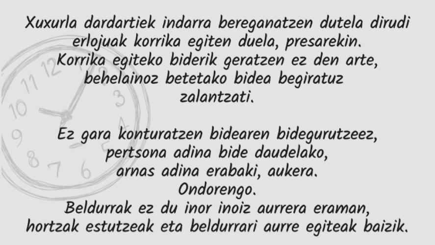 Bereganatutako jakintza bihurtu da askatasuna ta buruan txapela jarrita goazen mundua ibiltzera.