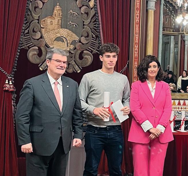 Aimarrek Juan Mari Aburto Bilboko alkatearen eta Eider Bilbao Aldayturriaga Hezkuntza Saileko zinegotziaren eskutik jaso zuen ikasle bikainentzako beka.
