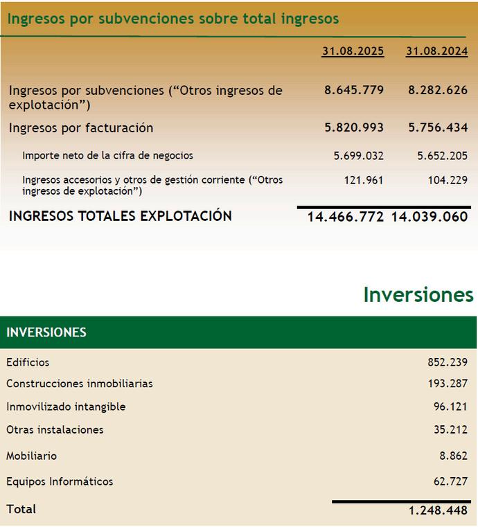 En el curso 2025-26, tal y como ha realizado los últimos cursos la Ikastola homogeneizó los ingresos por recibos en la forma en la que el Gobierno Vasco proporciona las subvenciones, es decir, en función del número de alumnos y alumnas y por los conceptos que subvenciona, para delimitar el déficit que presenta cada partida. Se calculó específicamente la cantidad real de los gastos que superan la fuente de financiación, en el concepto de “Kooperatiba”, y aquellas partidas que no reciben subvención y son independientes al horario lectivo se externalizaron a Behekosoloa XXI S.L.U., es el caso de todos los servicios deportivos escolares y extraescolares, y las actividades culturales y de Idiomas.