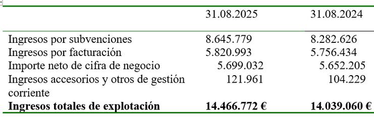 La partida de Otros gastos de explotación ha disminuido en 31.375 €, debido a la bajada del consumo de gas-oil, gracias a la incorporación de sistemas de aerotermia y placas fotovoltaicas en todos los edificios, y al menor coste de reparaciones extraordinarias realizadas en los meses de verano.