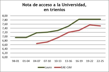 Se confirma la trayectoria de excelentes resultados académicos, consecuencia del esfuerzo coordinado de todos cuantos conforman Lauro Ikastola. Se mantiene el diferencial positivo de Lauro en el porcentaje de alumnos y alumnas que aprueban todas las asignaturas y promocionan. Añadido a esto, el porcentaje de alumnado que han finalizado la trayectoria de la Ikastola con una nota media del expediente de más de un 8,75 ha sido de un 31,9% (superando el 29,9% del curso pasado); y el de alumnos y alumnas con un expediente superior al 8 ha sido de un 49% (superando el 40,2% del curso pasado). La nota media de acceso a la Universidad en la convocatoria de junio se ha mantenido por encima del 7, siendo de 7,87, y continuando en línea con los últimos dieciséis años, lo que permite el acceso a un buen número del alumnado de Lauro en las facultades y estudios superiores.