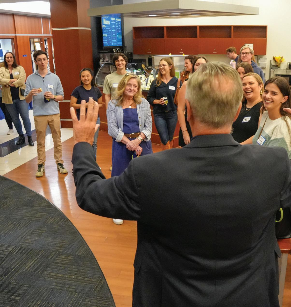 Headmaster Stuart McCathie greets faculty and alumni at the Alumni Weekend reception, where stories, laughter and decades of Lausanne memories fill the room.
