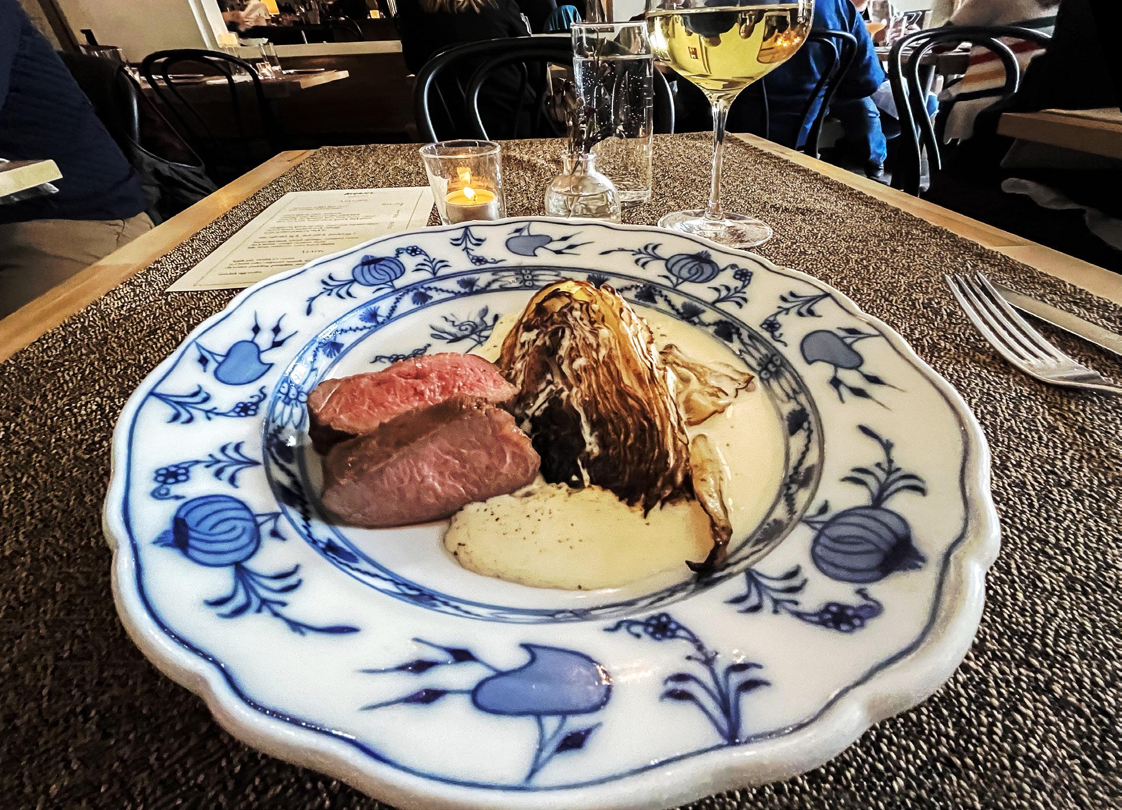 Two choices here: a tasting menu to reserve ahead at $145, or the a la carte list, which we chose. The tab for our duo, including one glass of wine each, was $138 before tip. Worth it? I’ll describe what comes out of the kitchen and let you decide. Service was uniformly friendly and helpful, advising us that items were designed for sharing.