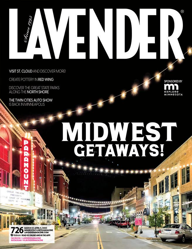 Entire contents copyright 2023. All rights reserved. Publication of the name or photograph of any person, organization, or business in this magazine does not reflect upon one’s sexual orientation whatsoever. Lavender Magazine reserves the right to refuse any advertising. This issue of Lavender® Magazine is available free of charge during the time period published on the cover. Pickup at one of our distribution sites is limited to one copy per person.