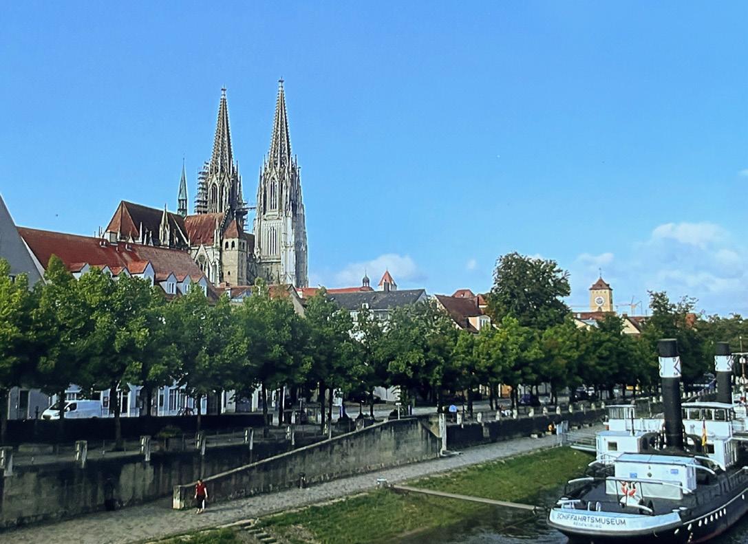 Back aboard, the ship’s Austrian flag is replaced by the gold, red and black bars of Germany’s banner as we head to Regensburg. Too “unimportant” to suffer World War II’s bombing raids, its 1,200 UNESCO-protected buildings still stand to greet us. One of these belonged to Otto Schindler of “List” fame. The town’s synagogue was destroyed, but its outline lives on in the form of memorial benches. Under a stone bridge from 1735, we happen upon a busy sausage stand, where we chomp our first mustard-gilded bratwurst. Just beyond, the magnificent stained-glass windows of St. Peter’s Cathedral (1273) illuminate our spirits.