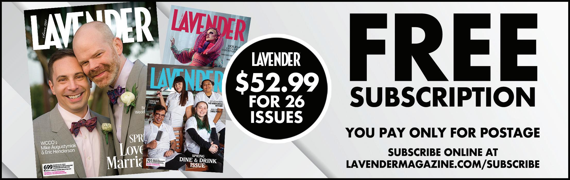 Being Minnesota’s LGBTQ+ magazine puts us at Lavender in a wonderful position to put together an Arts & Culture issue. Our state’s great arts scene is one of many great retorts to “why do you live there and put up with the cold?” and it’s on full display in this issue.