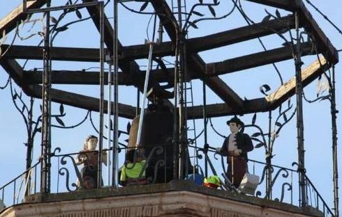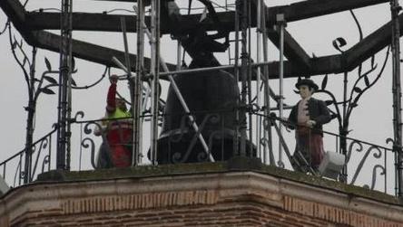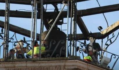 Labores de refuerzo en el soporte del campanario de la Colegiata de San Antolín