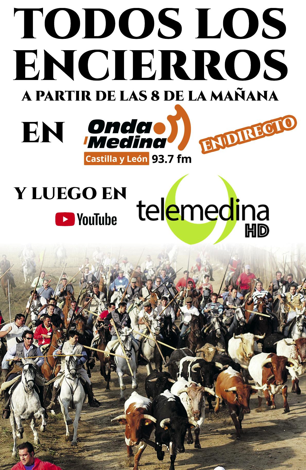 Un año más, Radio Televisión Medina y Comarcas -grupo de comunicación que aglutina a La Voz de Medina y Comarca, Onda Medina Castilla y León y Telemedina Canal 9- vuelve a convertirse en "La casa de los encierros". Un lema no escogido al azar, teniendo en cuenta que es a través de sus ondas, en el 93.7 FM, el único canal por el que se pueden seguir los encierros tradicionales de las Ferias y Fiestas de San Antolín en directo. Por si fuera poco, La Voz de Medina y Comarca es el diario online en el que, una vez finalicen estas citas declaradas de Interés Turístico Nacional, se redactará una extensa crónica acompañada de multitud de imágenes tomadas por los redactores en dicho medio de comunicación. Como no podría ser de otro modo, las cámaras de Telemedina Canal 9 no cesarán en su empeño de acompañar a las reses con el propósi-