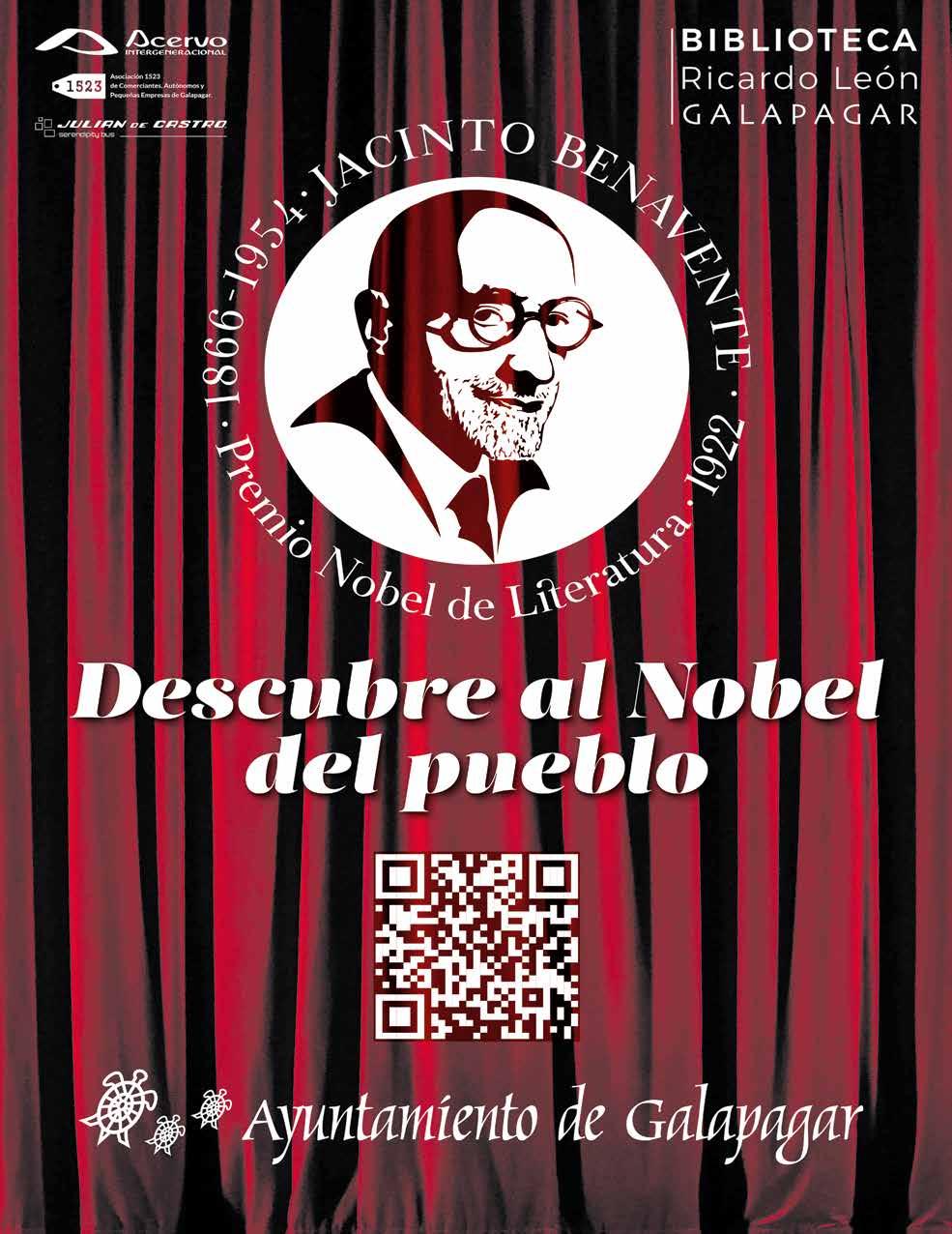 El 9 de noviembre de 2022 se cumplen cien años de la notificación de la con cesión del Premio Nobel de Literatura a Jacinto Benavente. El Ayuntamiento de Galapagar, la Biblioteca Ricardo León y la ONG Acervo Intergeneracio nal han puesto en marcha la campa ña “Descubre al Nobel del Pueblo”. El objetivo es promover la difusión de la figura y del acervo cultural de Jacinto Benavente en Galapagar, un anticipo a un año dedicado al Nobel.