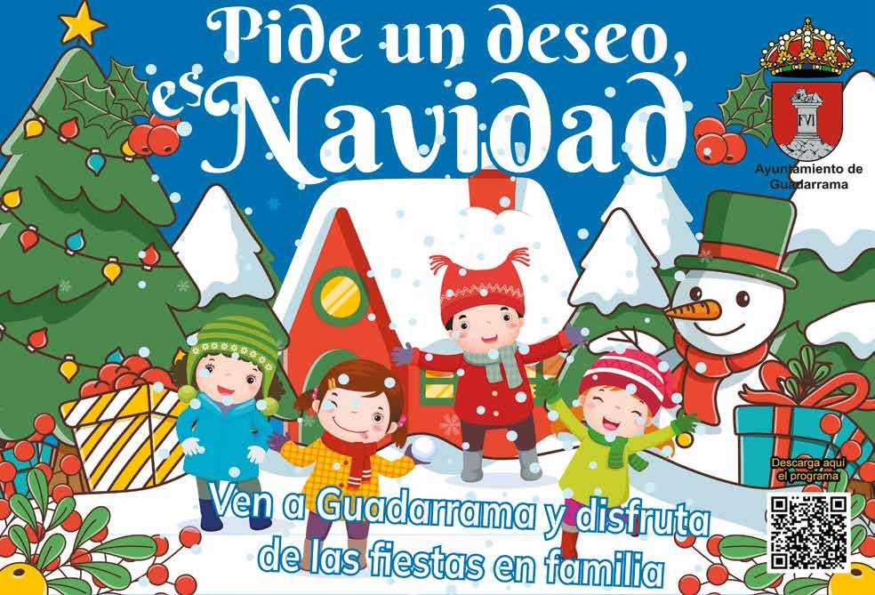La iluminación y decoración na videña, los talleres, mercados, conciertos, juegos, etc. vuelven a formar parte de la programación de Navidad que el Ayuntamien to de Guadarrama pondrá en marcha el 1 de diciembre con la apertura del primer mercado de Navidad en la Plaza Mayor. Las concejalías de Desarrollo Local, Cultura y Deportes han elaborado el programa de Navi dad, que cuenta además con la colaboración de numerosas aso ciaciones y organizaciones de la localidad. Todas ellas se han uni do para hacer de Guadarrama el lugar de la Navidad. Un objetivo que han recogido con el título “Pide un deseo es Navidad”.