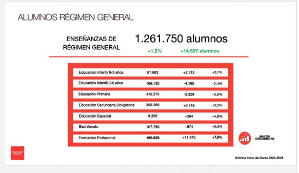 Estos días más de un millón de alumnos vuelven al cole en la Comunidad de Madrid. De todas las etapas educativas, las que más crecen son la de 0 a 3 años (+2,7%) y la de Formación Profesional (+7,5%), sobre todo, la de Grados medios. Descienden los estudiantes en infantil (de 3 a 6 años) y los de Primaria (-0,8%). De todos ellos, el 54,3% irán a centros públicos, con un incremento con respecto a cursos anteriores. A estos se suman los que eligen como opción la concertada. En total, el 82,7% de los escolares estudiarán en centros sostenidos con fondos públicos.