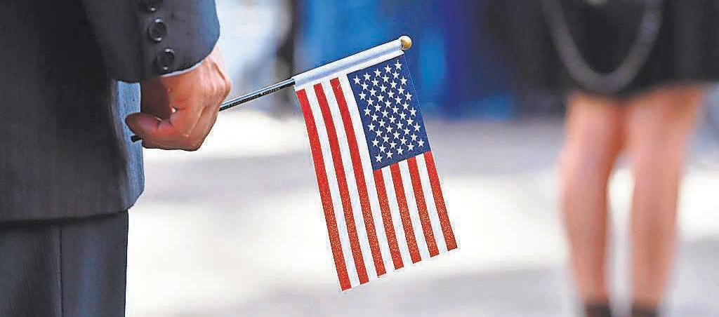 La gente sostiene banderas estadounidenses mientras asiste a su ceremonia de juramento de naturalización para la ciudadanía estadounidense en Los Ángeles, California, el 25 de mayo de 2022. FREDERIC J. BROWN,