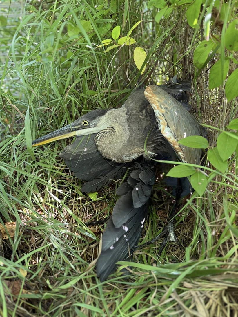 Lawrence Humane’s Animal Services team continues to demonstrate just how varied, unpredictable, and essential their work is in our community. Whether responding to calls about stray pets, wildlife in distress, or unusual animal encounters, our team approaches every situation with compassion and a can-do attitude! In 2025, that included rescuing an injured blue heron off of Highway 59 after it had been struck by a car. With traffic rushing by and the heron attempting to evade capture in thick brush, it was an all-hands effort in the sweltering sun. Ultimately, the heron was safely secured by our team and transported to our partners at Operation Wildlife for specialized medical care.