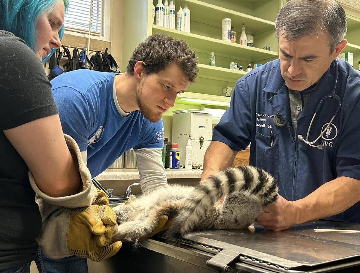And some calls remind us just how unusual animal welfare work can be. In February 2025, our staff received a report of a strange-looking animal spotted in Clinton State Park. The photo revealed a surprising sight - a ring-tailed lemur, an endangered primate native to Madagascar and decidedly NOT to Kansas. Recognizing the urgency of the situation, our Animal Services team enlisted staff member and former Emporia Zoo employee, Tesla Moua, whose experience handling lemurs proved invaluable. Remarkably, the lemur was located quickly and transported to Lawrence Humane for temporary housing and care while a long-term plan was developed.