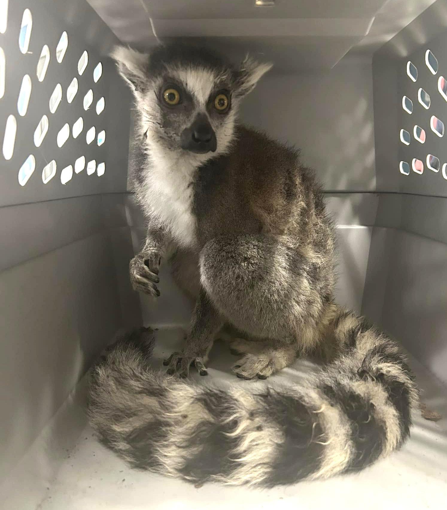 Ultimately, the lemur was transferred to a licensed facility in Texas, where he has found a chosen lemur family and will contribute to efforts to increase the population of this endangered species!
