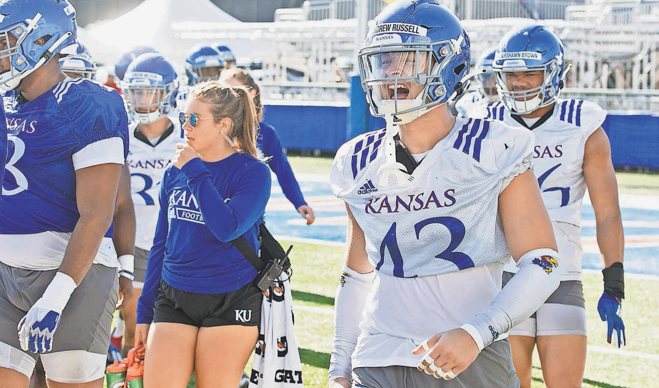 Leipold said the Jayhawks’ tight ends are “a great example” of the development of the program in Year 2, even though they remain unproven on the whole. Those at the position have been rotating in for snaps instead of having each one scripted for a certain player to build depth and wellroundedness. “They’re a lot more comfortable and understanding,” Leipold said. “We’re moving them around a lot, doing different things, using them different ways.”