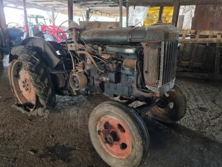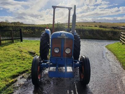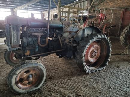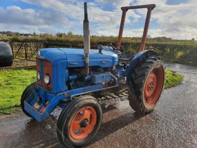 Blue Fordson Major, Industrial Braking, non working hydraulics, starts, runs, mechanically sound. Good body conditions, wheels in good condition. Clock does not work, Ex Army – No V5