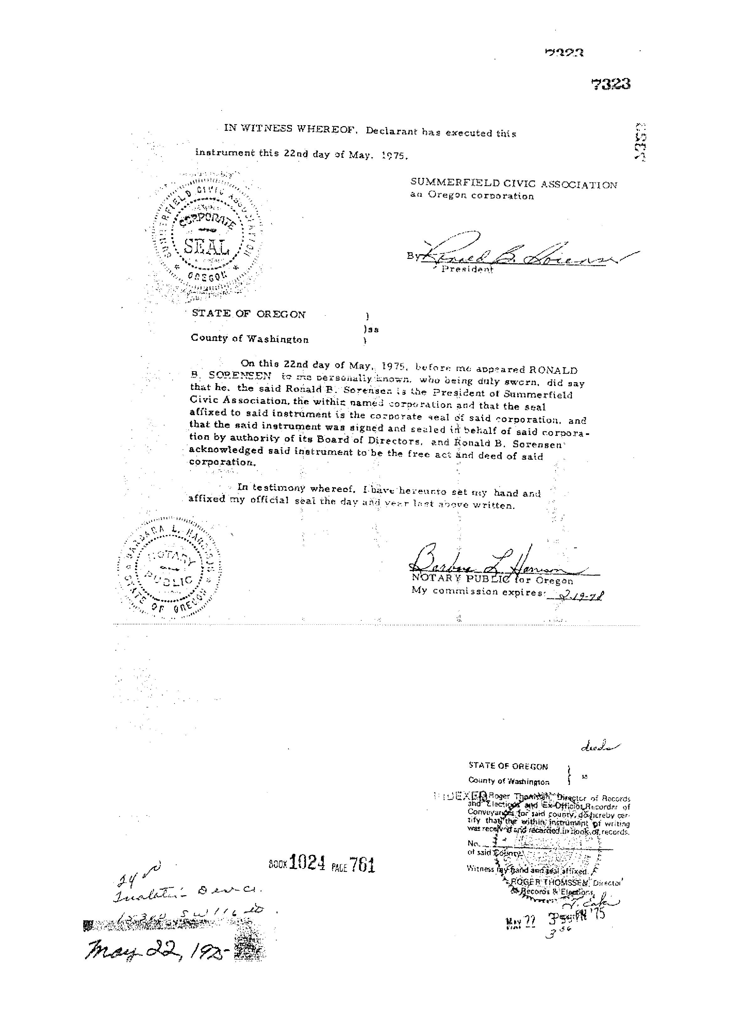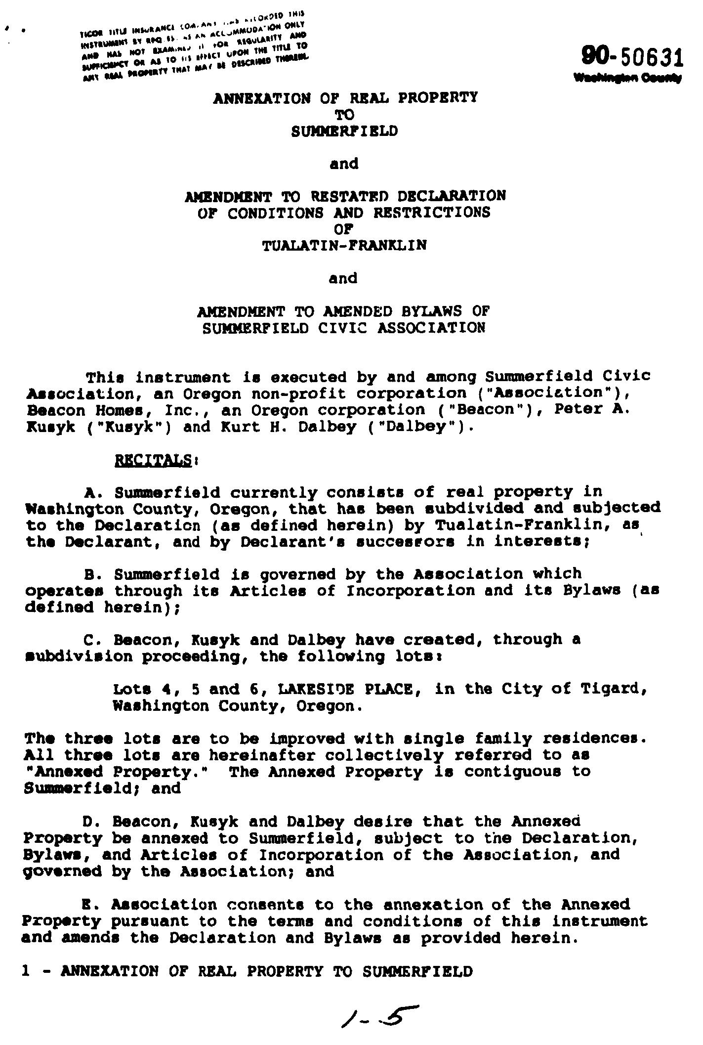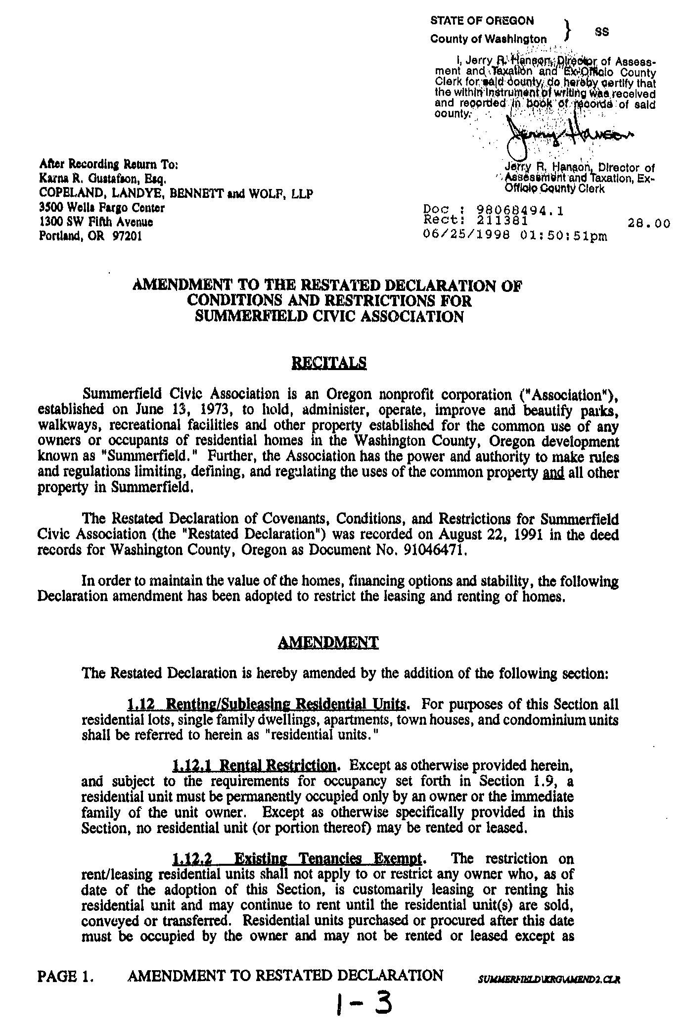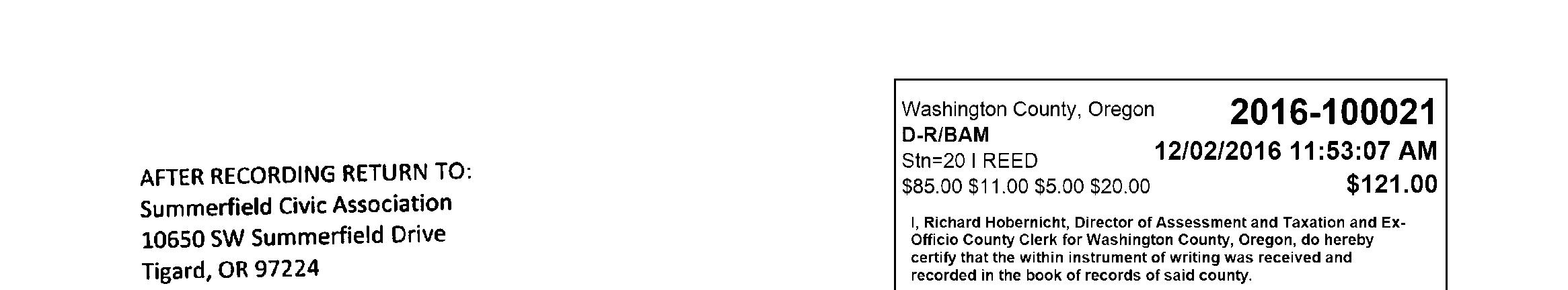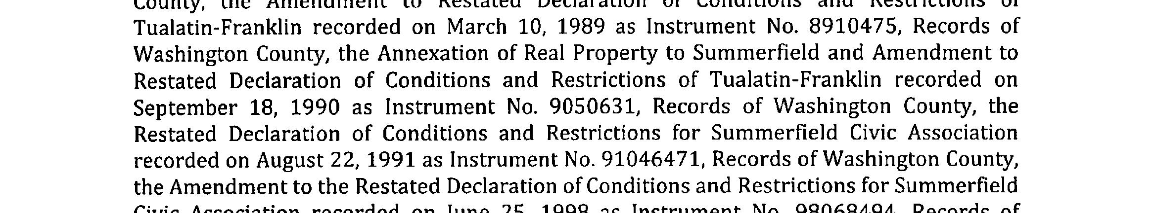 Omitted from the attached document is any covenant or restriction that is based upon, but not necessarily limited to, race, color, religion, sex, sexual orientation, familial status, marital status, disability, handicap, national origin, ancestry, source of income, gender, gender identity, gender expression, medical condition or genetic information, as set forth in applicable state or federal law, except to the extent that such covenant or restriction is permitted by applicable law. Oregon Version 20150707