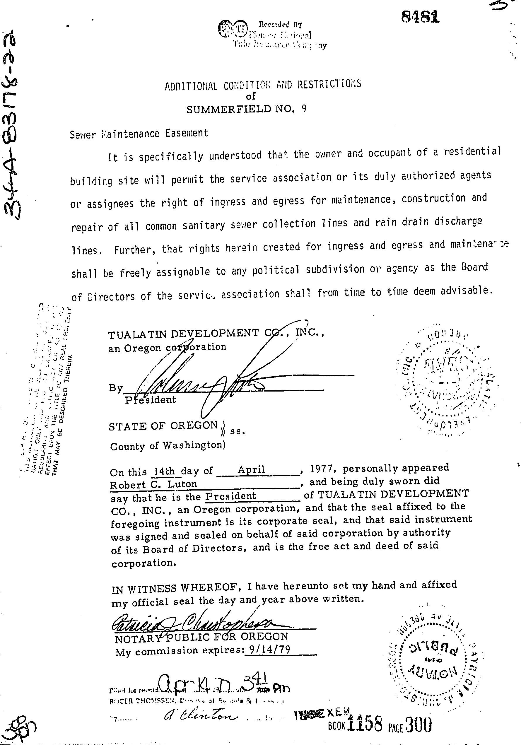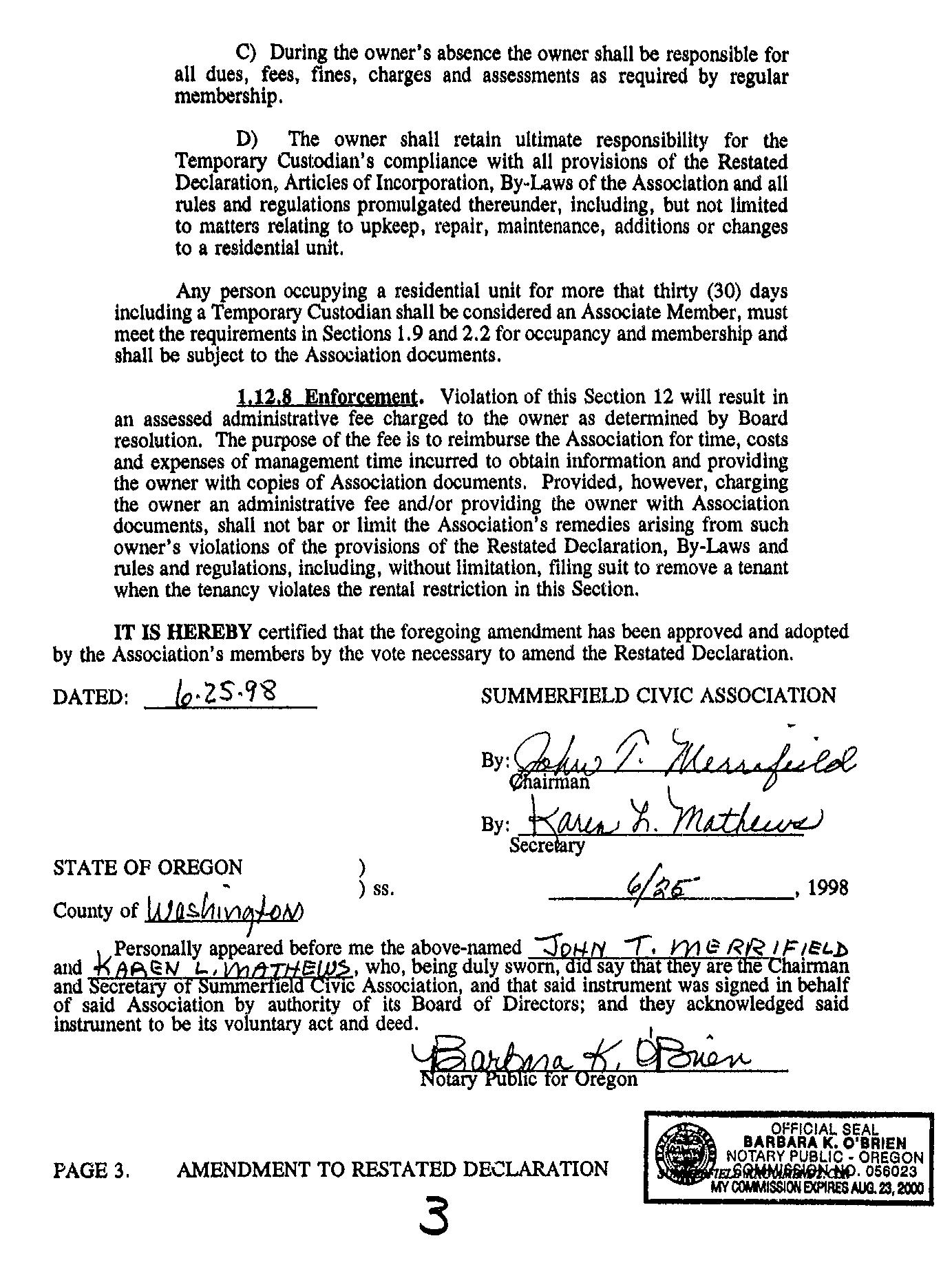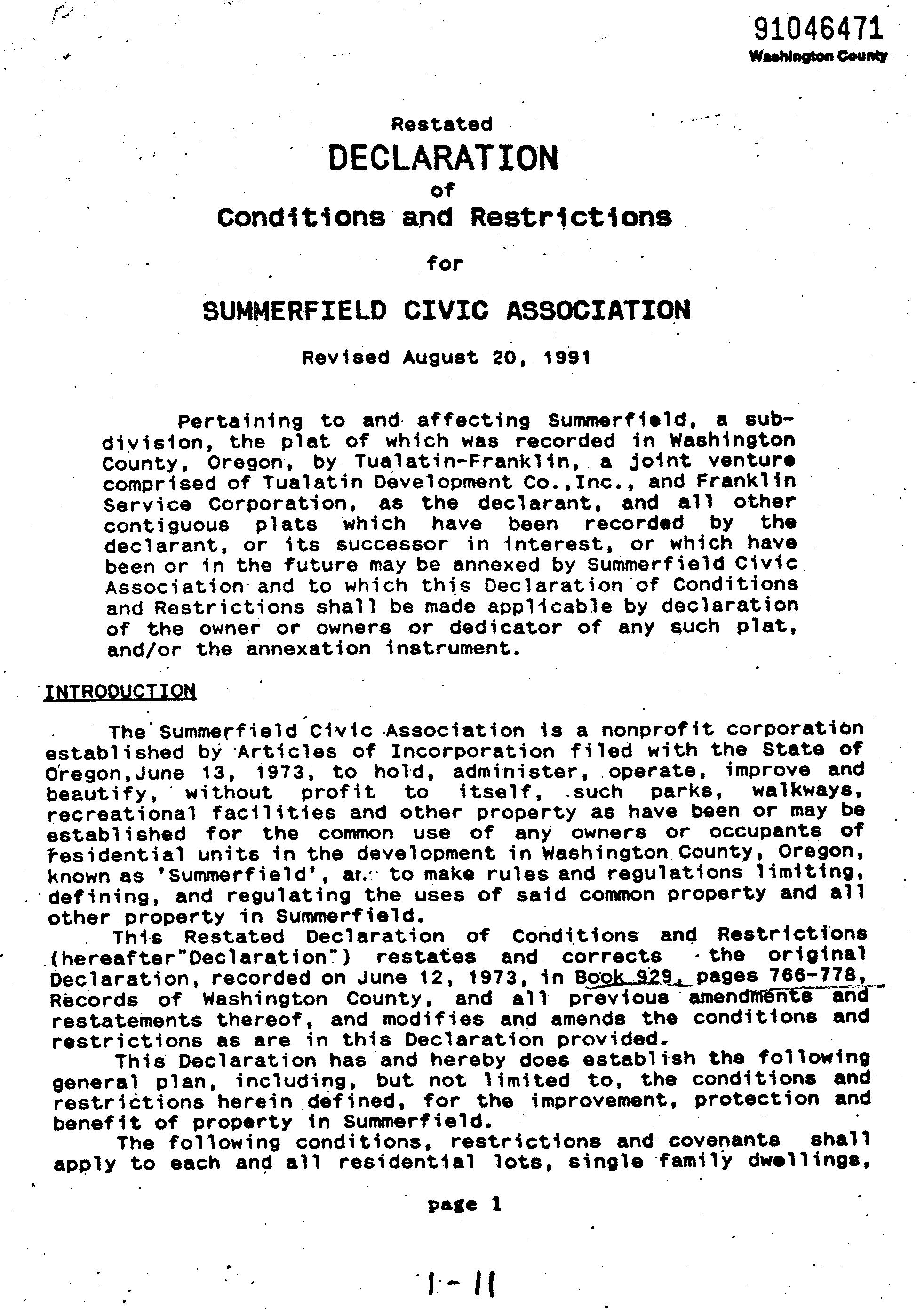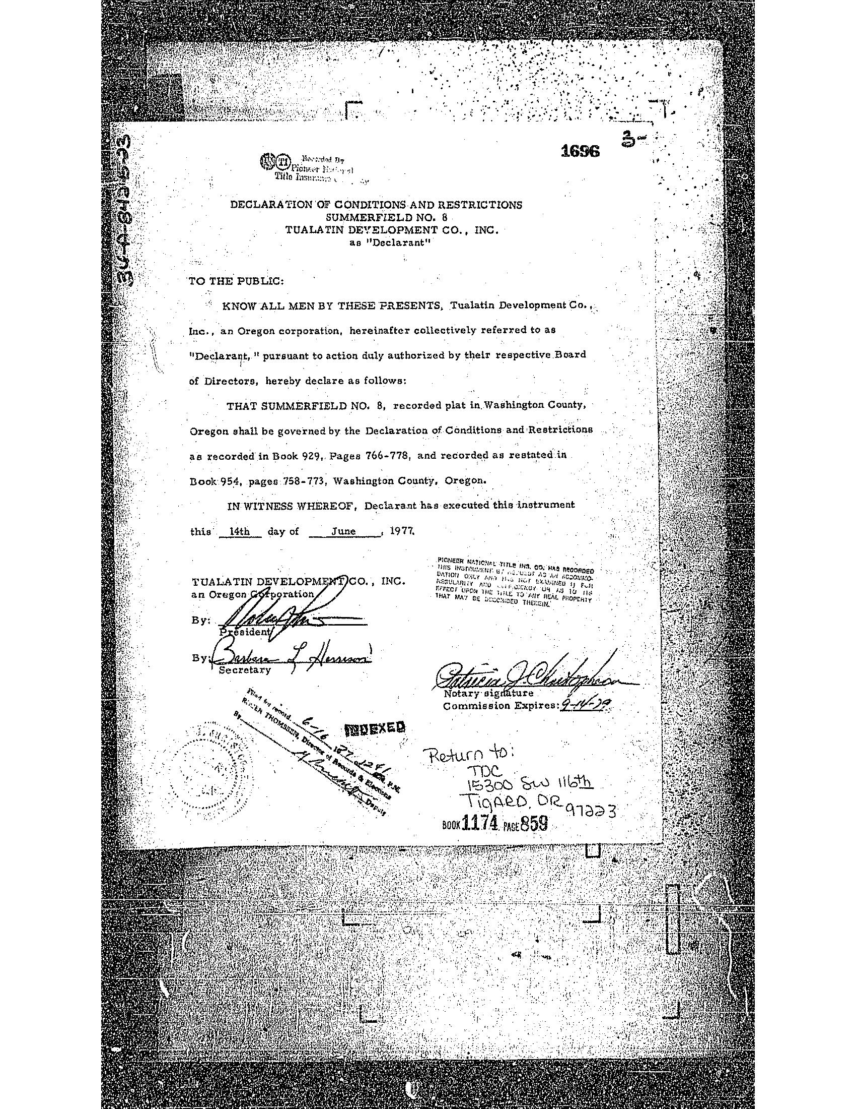 Omitted from the attached document is any covenant or restriction that is based upon, but not necessarily limited to, race, color, religion, sex, sexual orientation, familial status, marital status, disability, handicap, national origin, ancestry, source of income, gender, gender identity, gender expression, medical condition or genetic information, as set forth in applicable state or federal law, except to the extent that such covenant or restriction is permitted by applicable law. Oregon Version 20150707