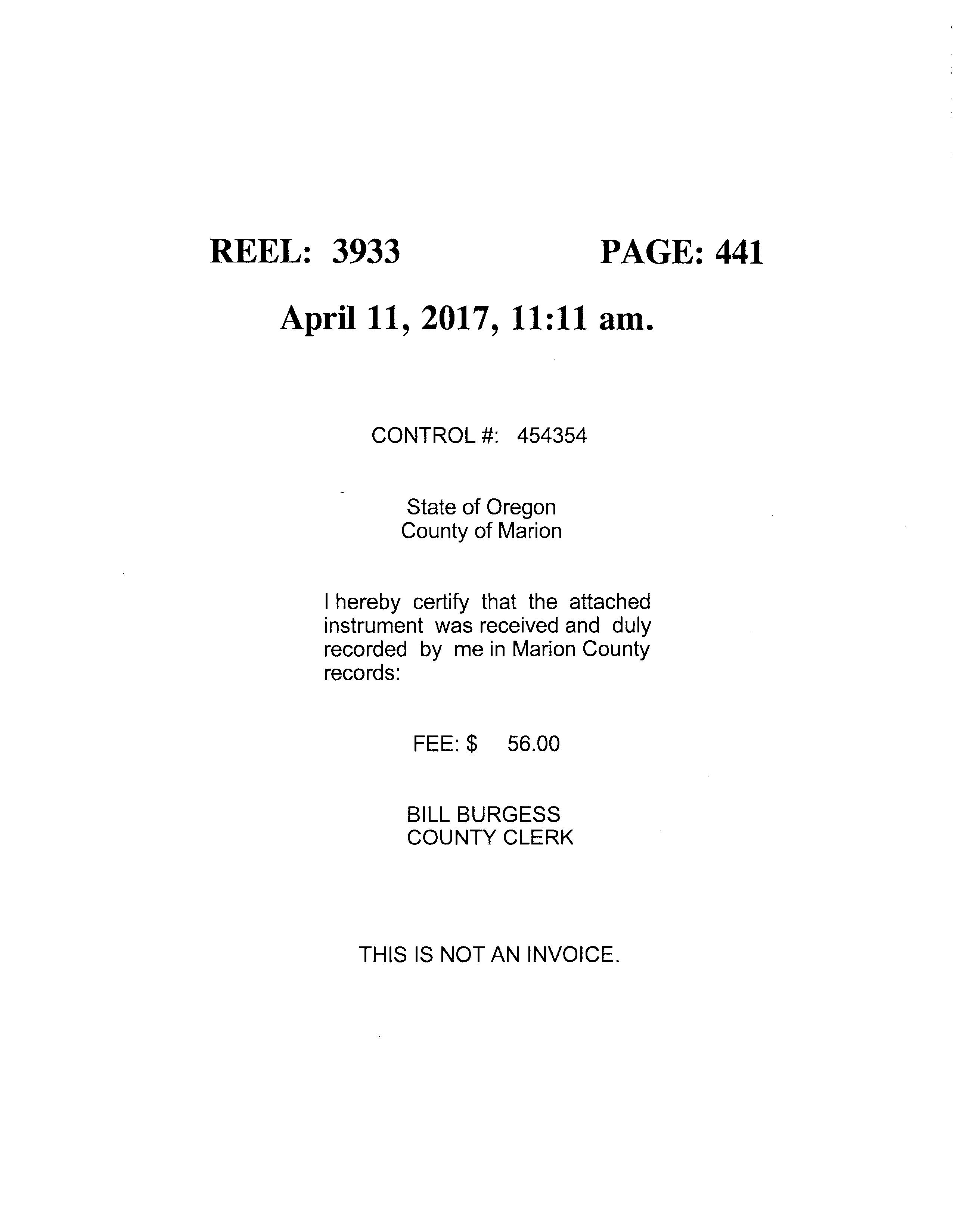 Omitted from the attached document is any covenant or restriction that is based upon, but not necessarily limited to, race, color, religion, sex, sexual orientation, familial status, marital status, disability, handicap, national origin, ancestry, source of income, gender, gender identity, gender expression, medical condition or genetic information, as set forth in applicable state or federal law, except to the extent that such covenant or restriction is permitted by applicable law. Oregon Version 20150707
