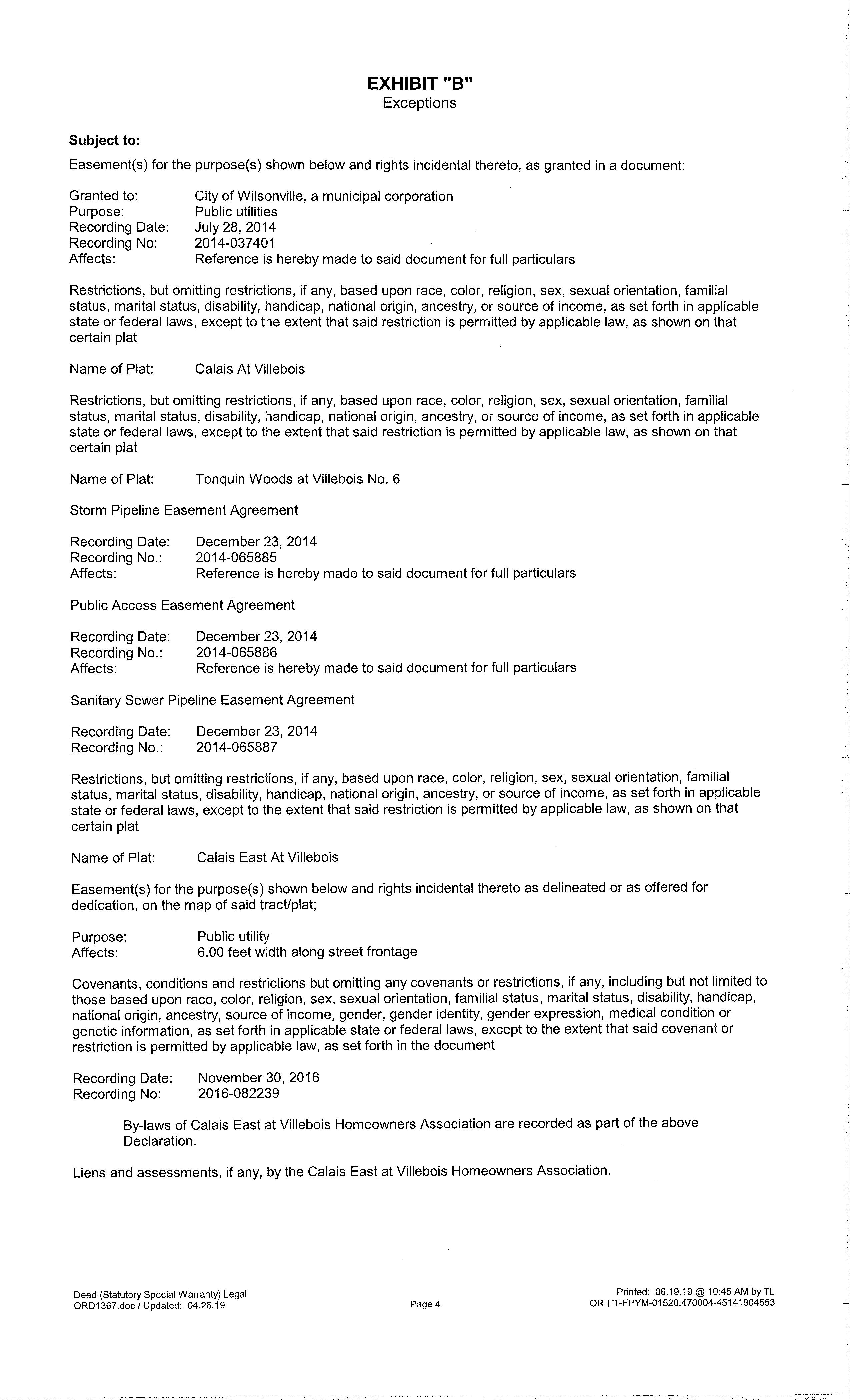 CC&Rs: Calais East at Villebois