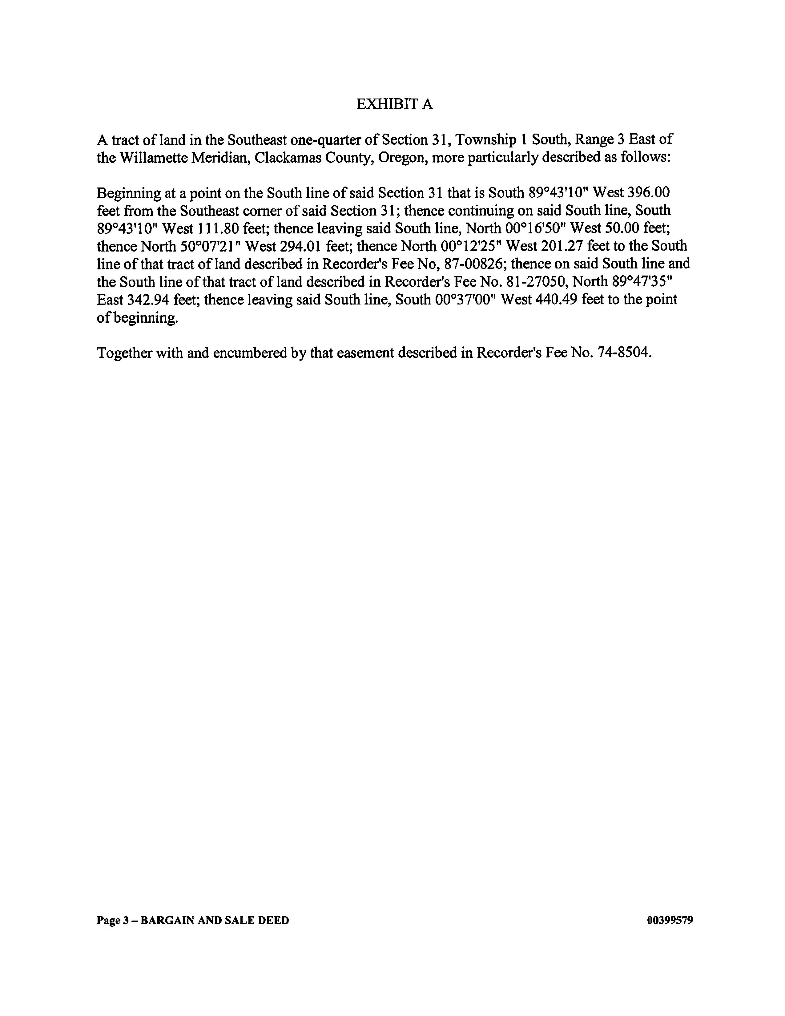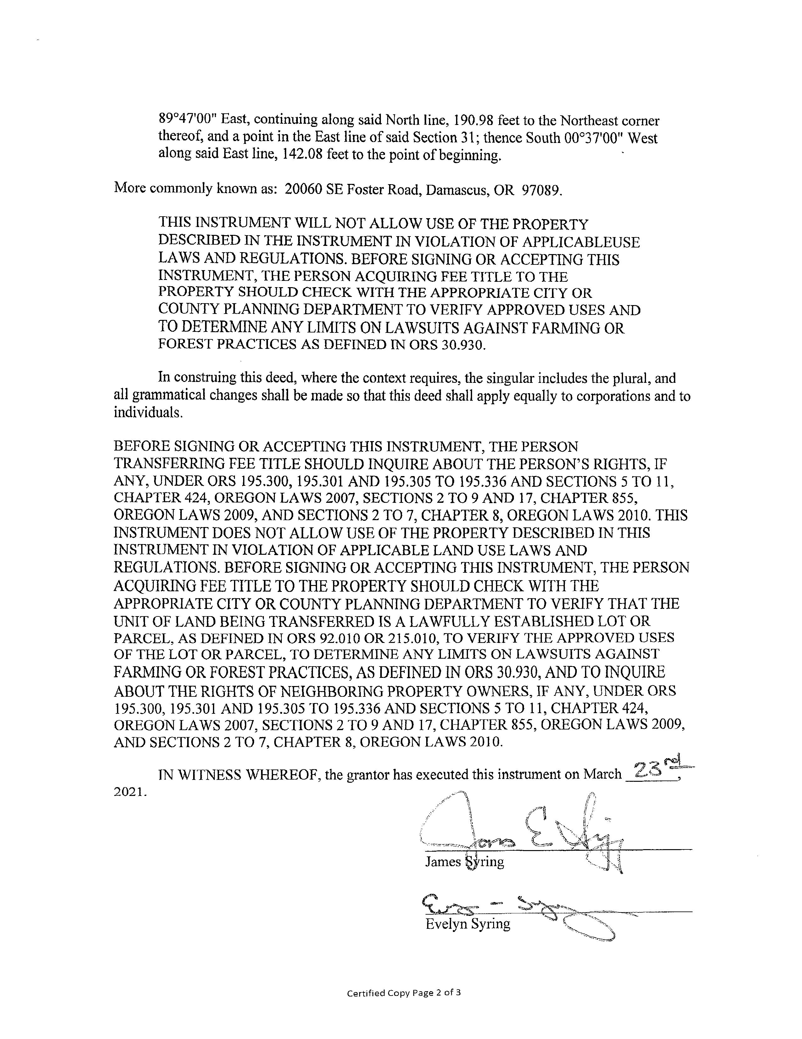 Mailing Address: PO BOX 2885 CLACKAMAS, OR 97015-2885 Property Description